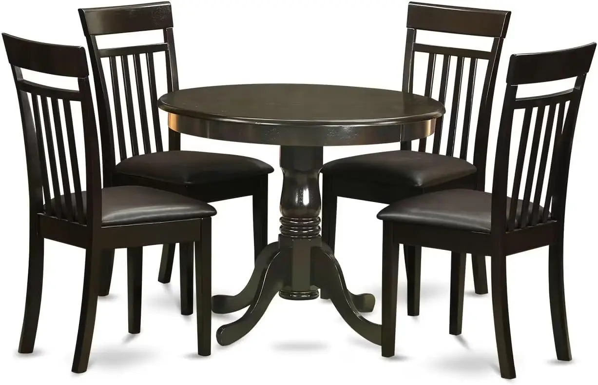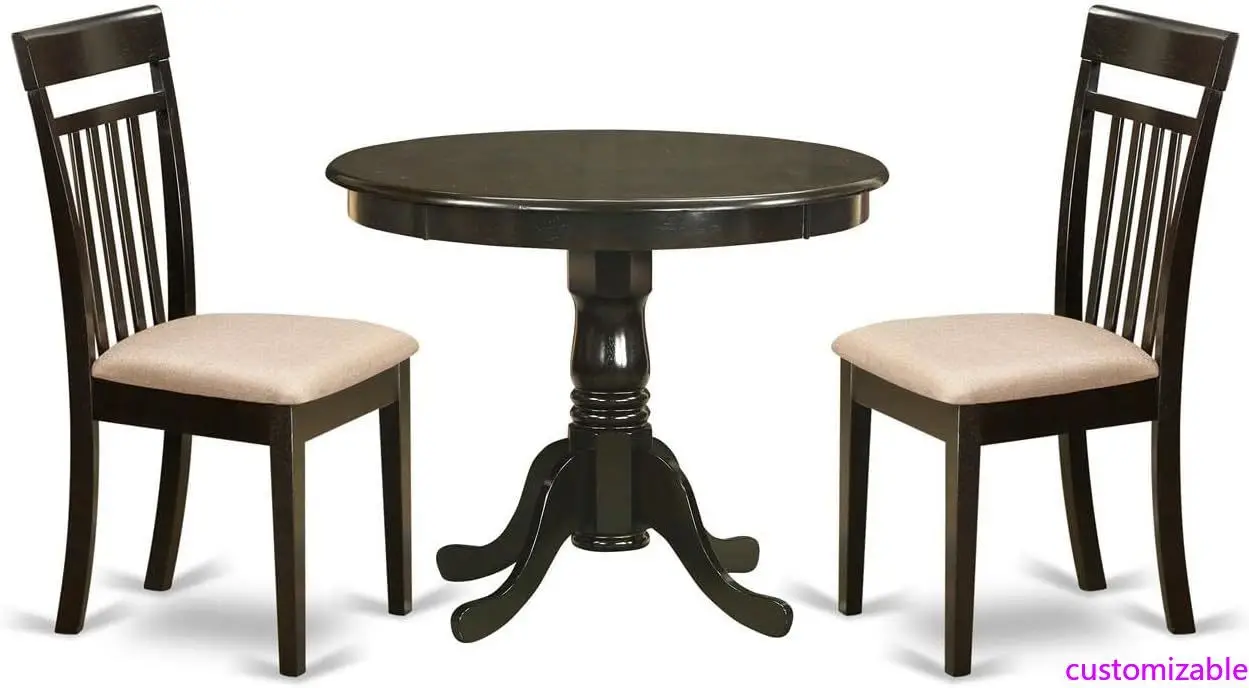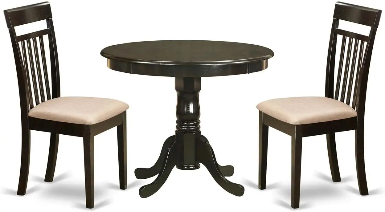 ANCA3-CAP-C 3 Piece Kitchen Table Set for Small Spaces Contains a Round Dining Table with Pedestal and 2 Linen Fabric Dining Room Chairs, 36×36 Inch, Cappuccino
