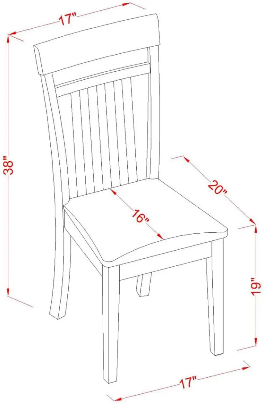 - PRODUCT DIMENSIONS: The Dimensions of the gorgeous chairs for the dining room is: Length: 20; Width: 17; Height: 38. The Dimensions of the fabulous dining room table: Length: 36; Width: 36; Height: 29.5.