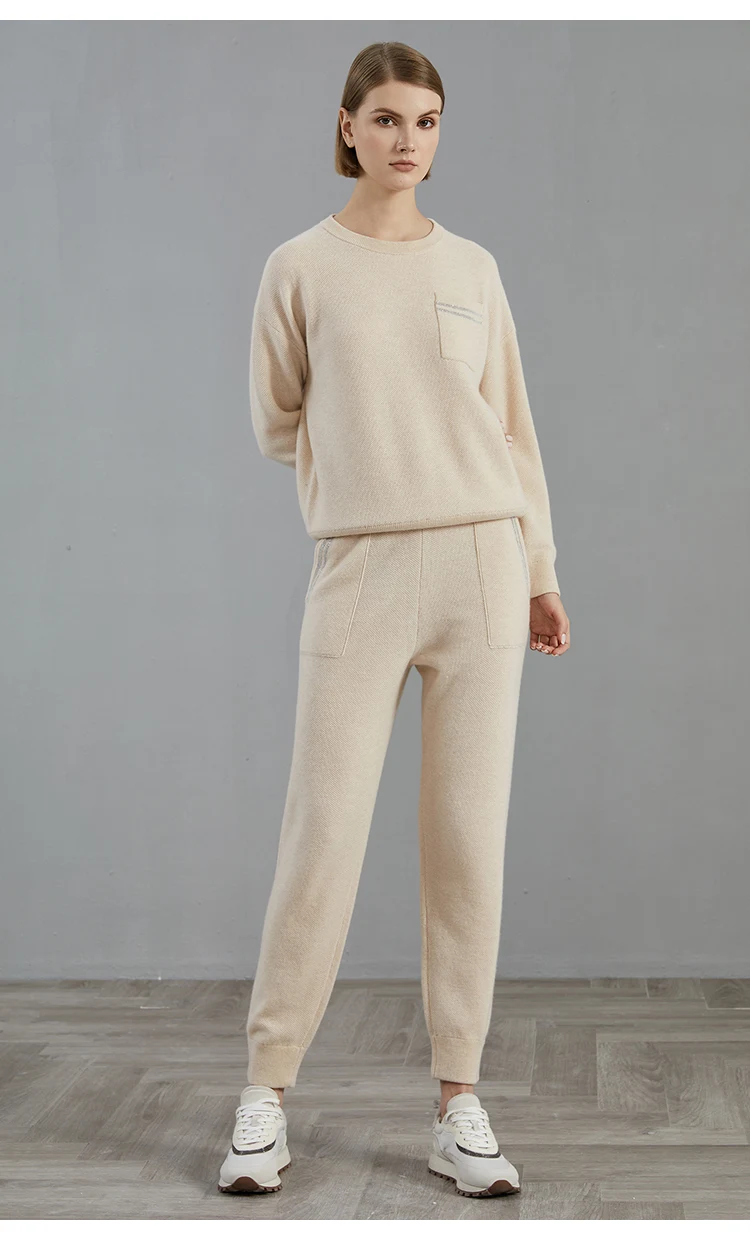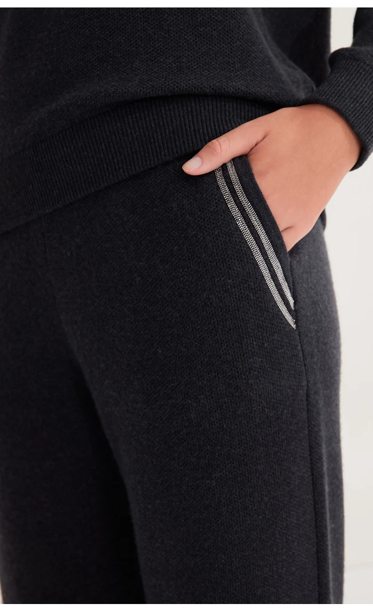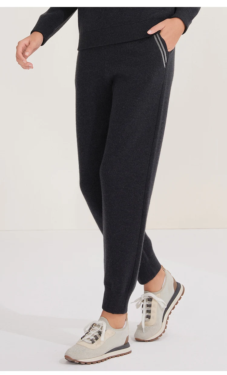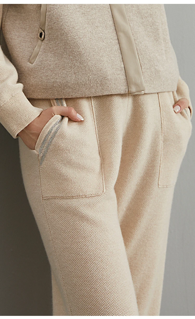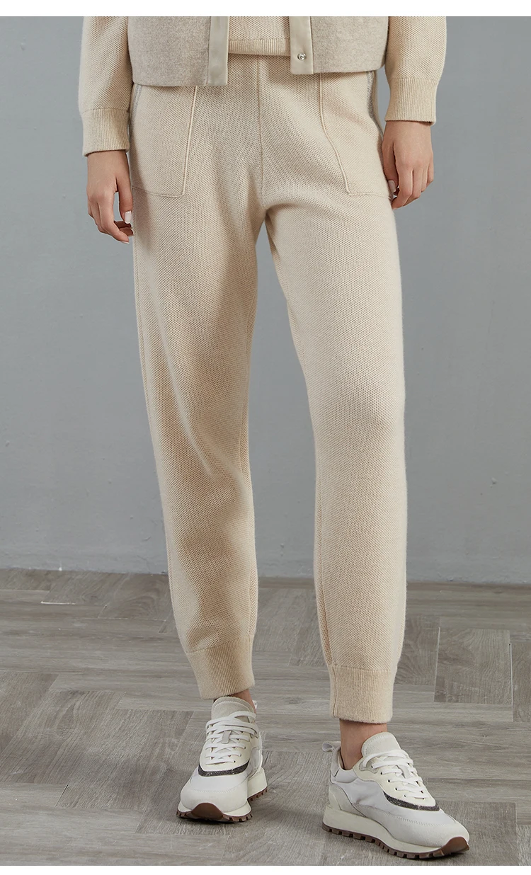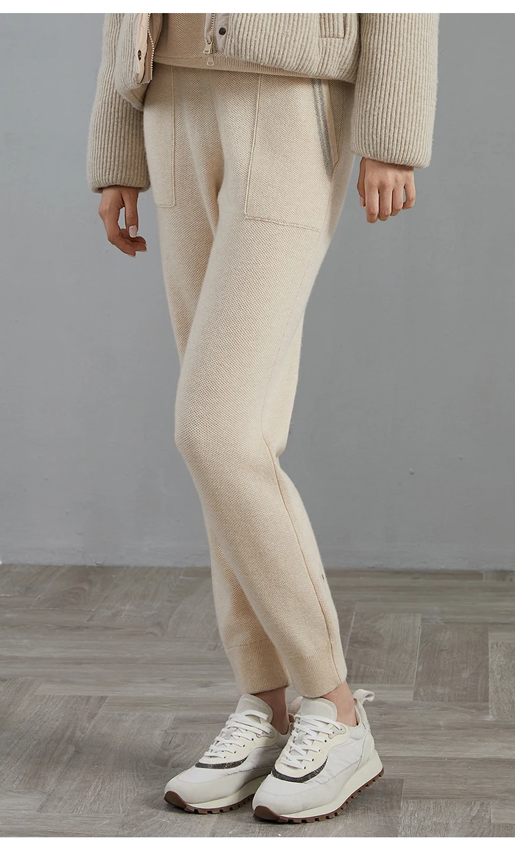 BC-288 High Waisted Pockets Woolen Thick 12Gg 100% Cashmere Women's Pants & Trousers Casual Pants Clothes