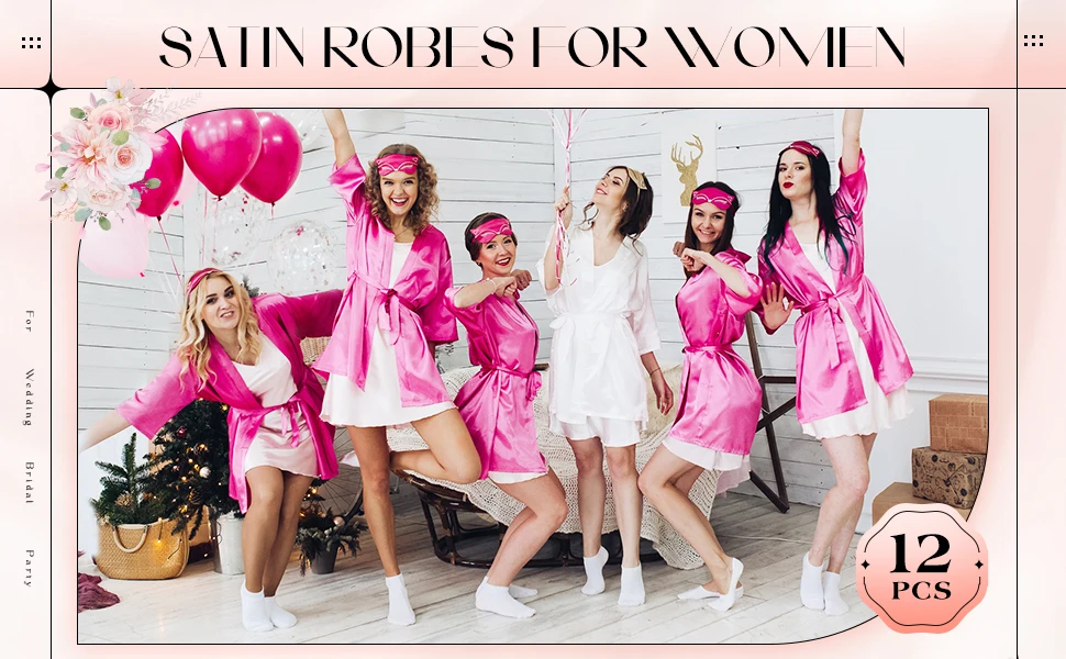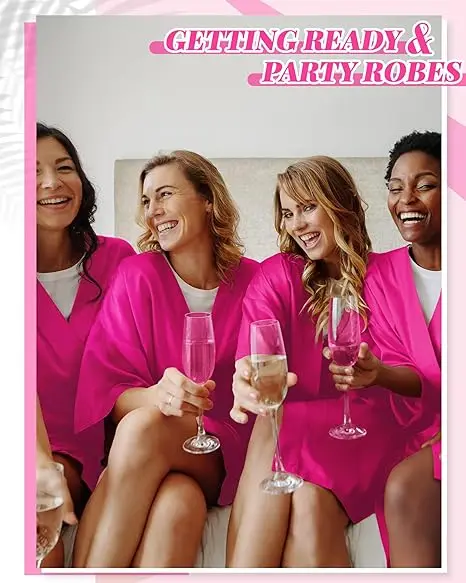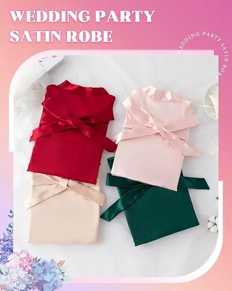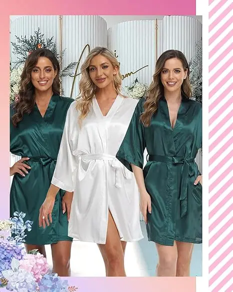 Bridesmaids Robes for Women Silk Satin Kimono Short Robe Bulk Bridal Party Getting Ready Outfits Wedding Sleepwear