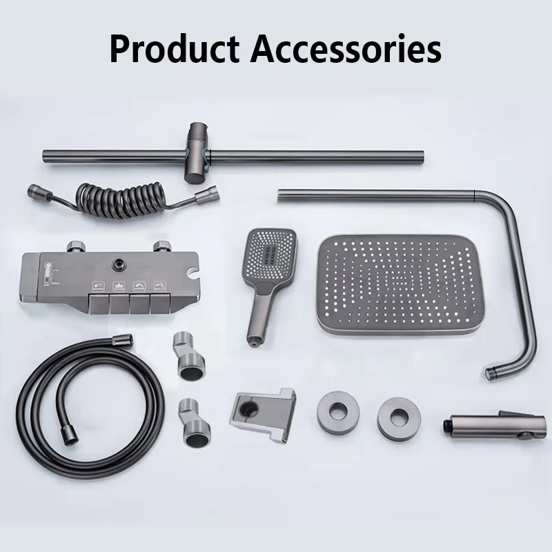 Material: Grifo de ducha de cobre, rociador superior de plástico ABS, barra de ducha de acero inoxidable, manguera de PVC