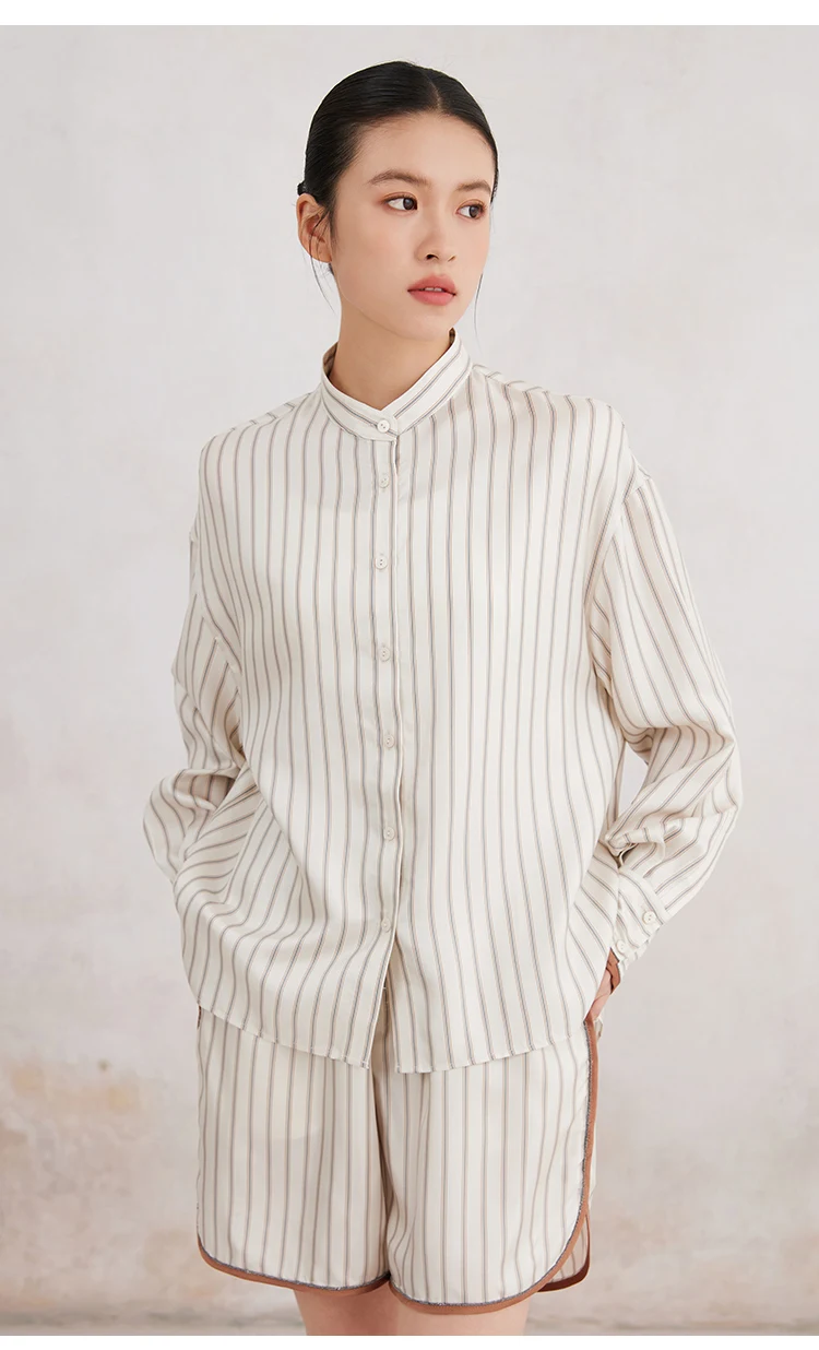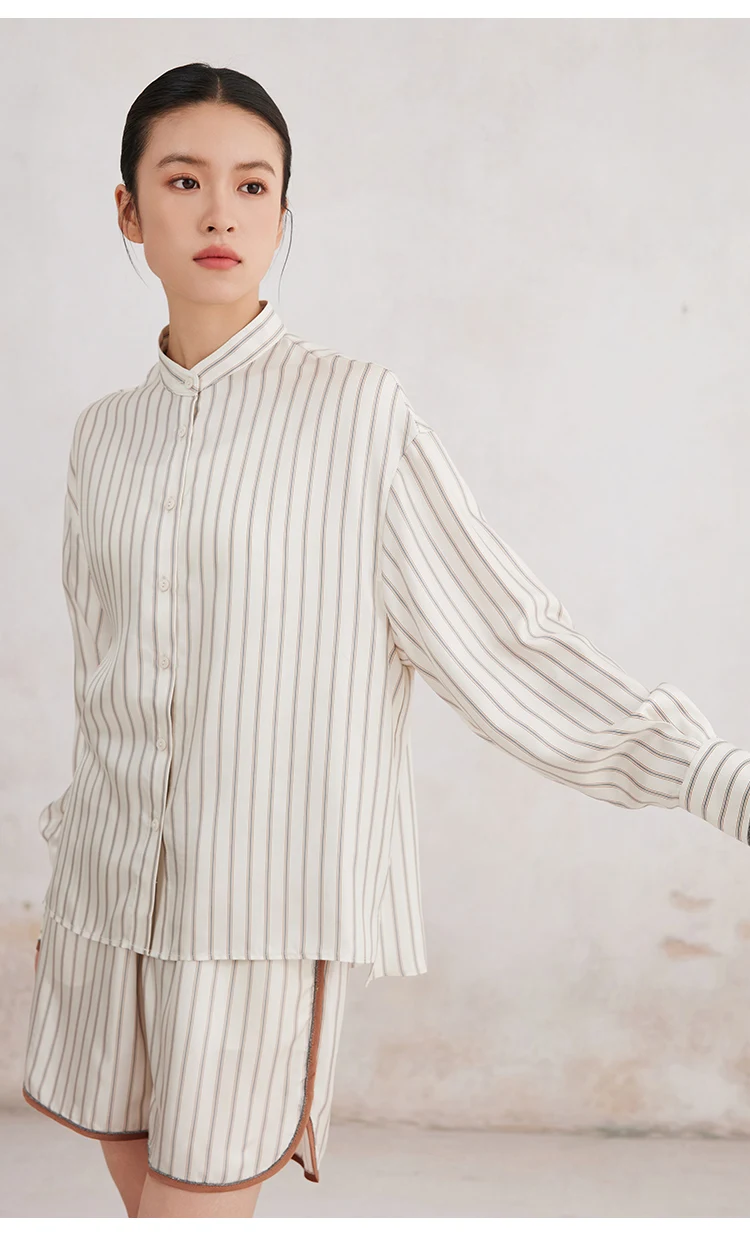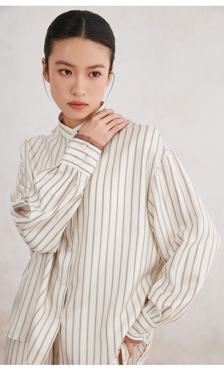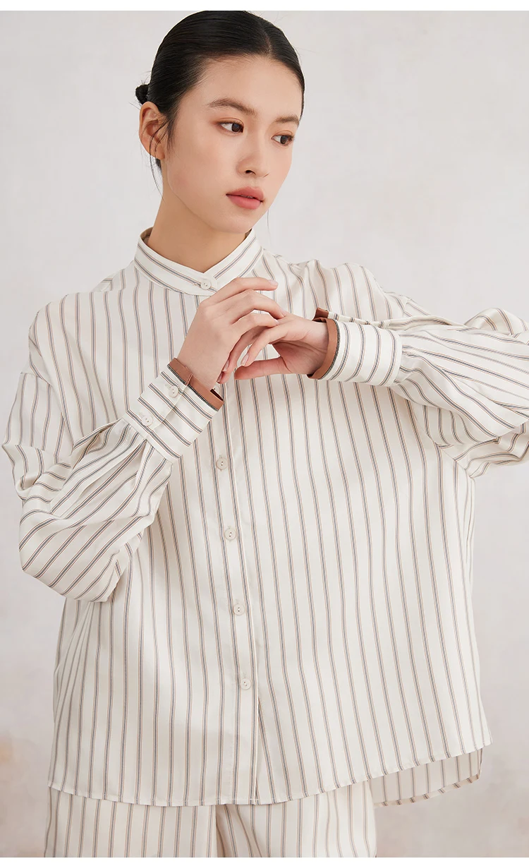 K3166X Luxury Lapel Striped 100% Silk Blouse Silk Clothes Blouse Women Silk Women Shirt Tops For Women
