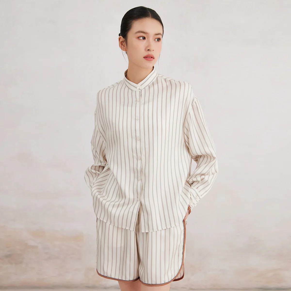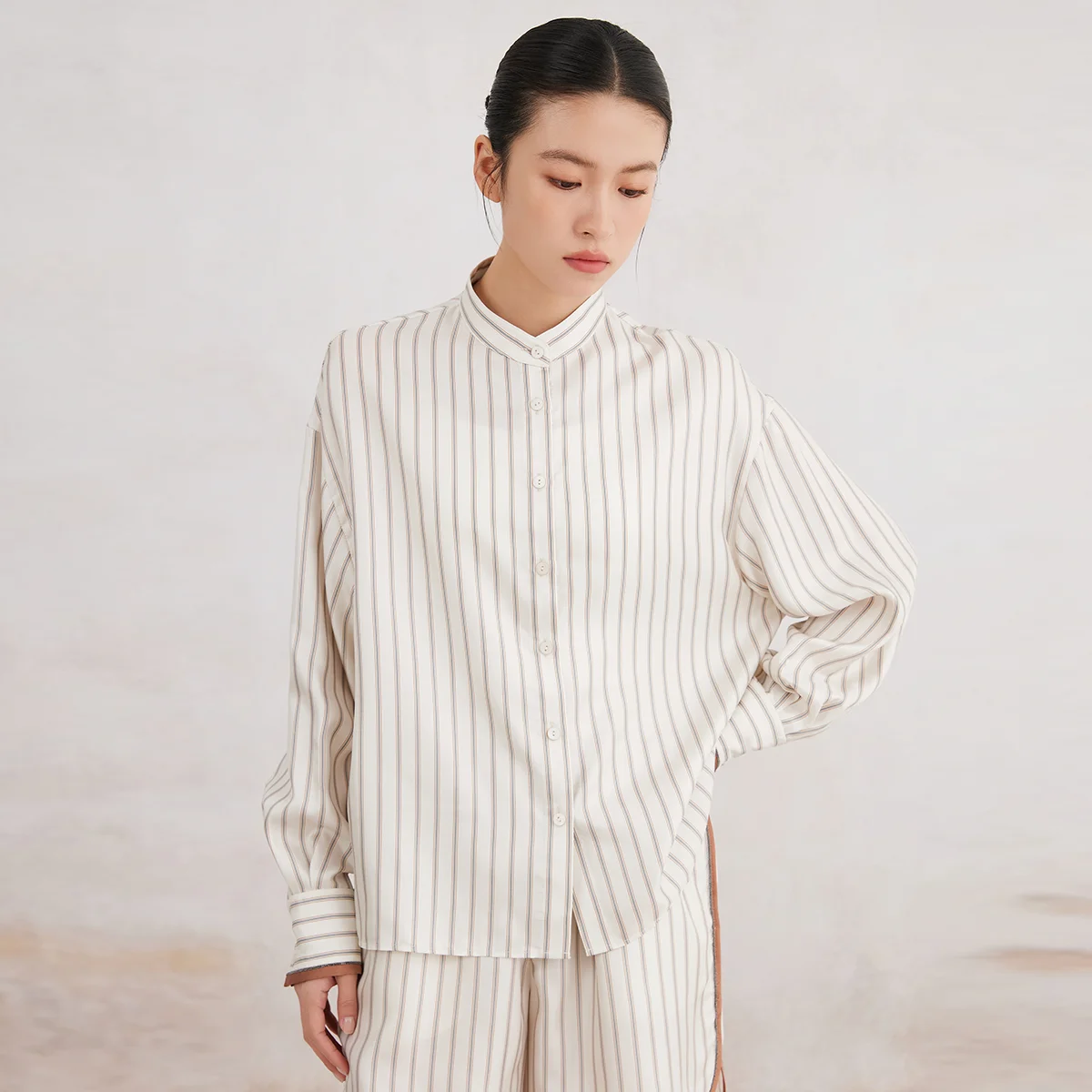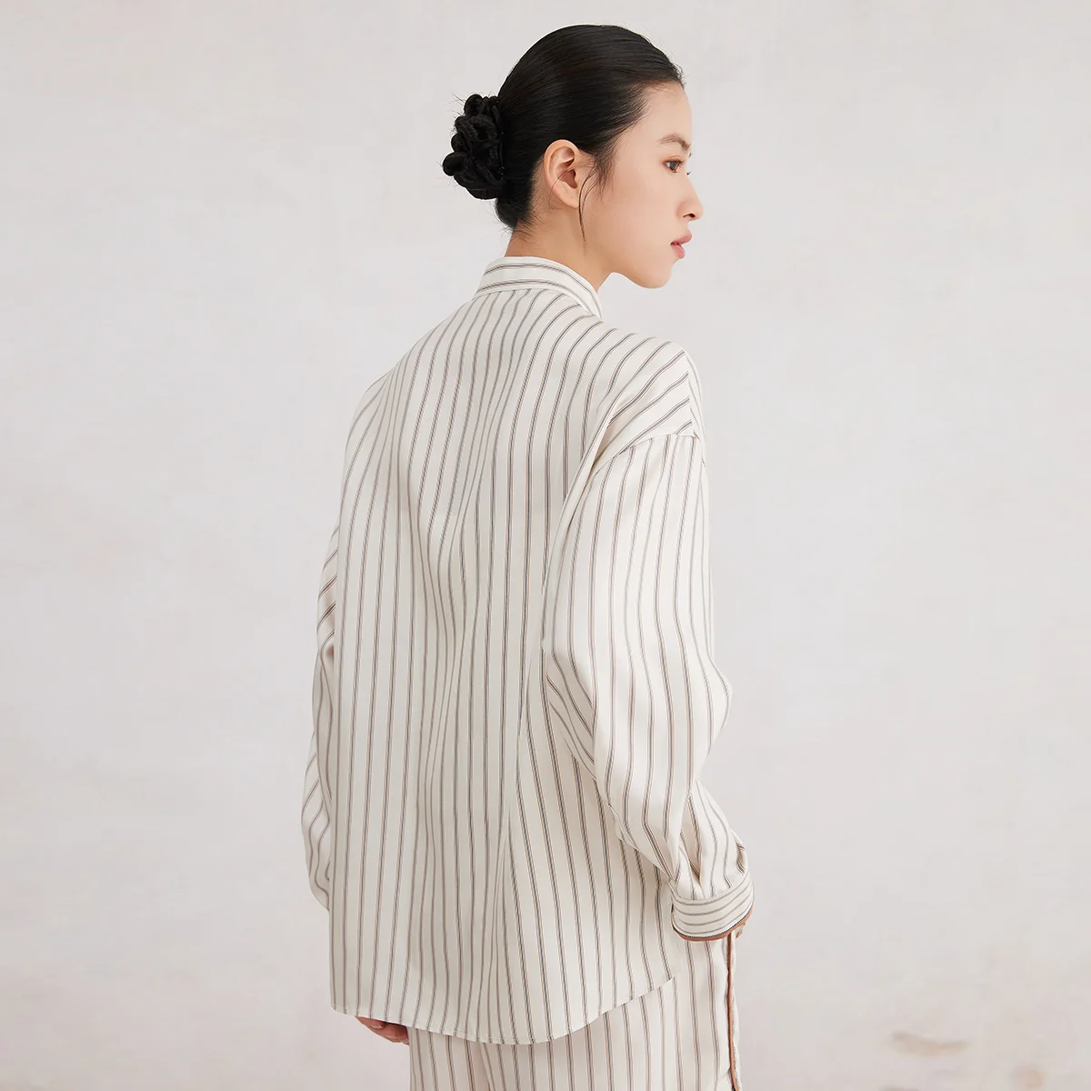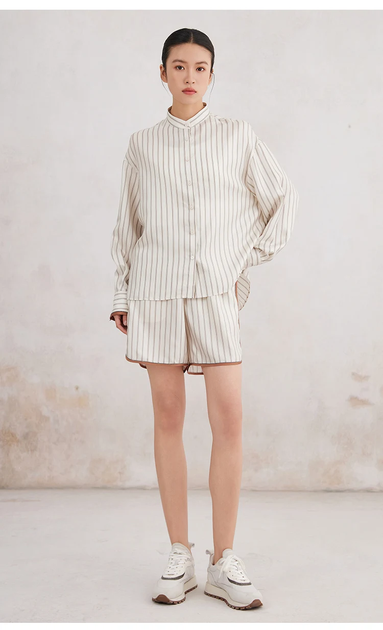 K3166X Luxury Lapel Striped 100% Silk Blouse Silk Clothes Blouse Women Silk Women Shirt Tops For Women