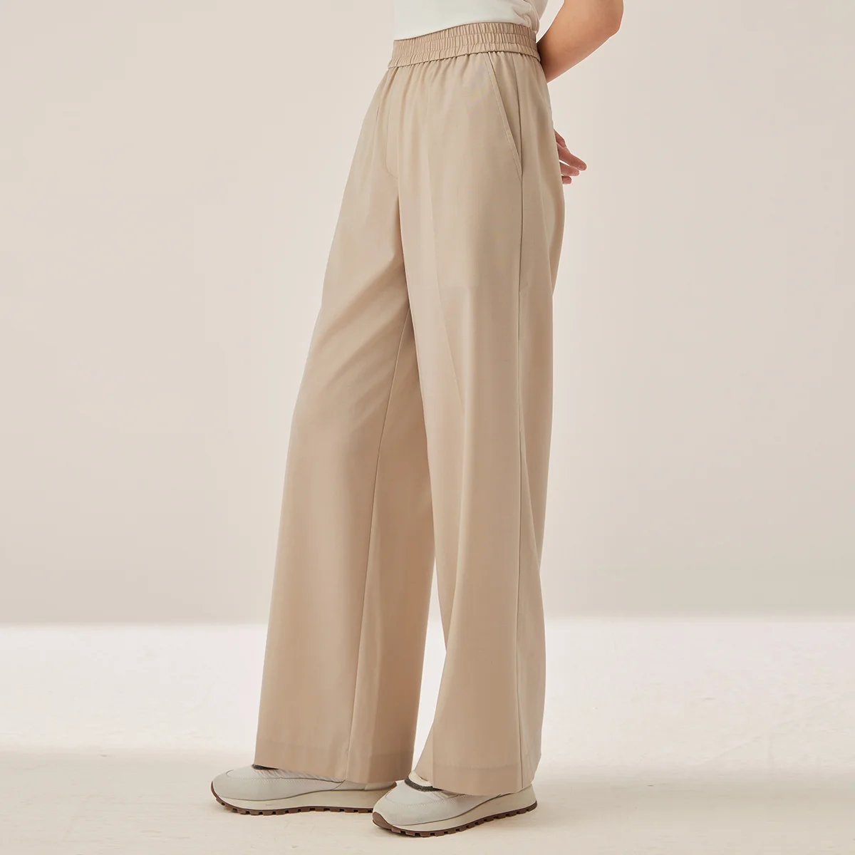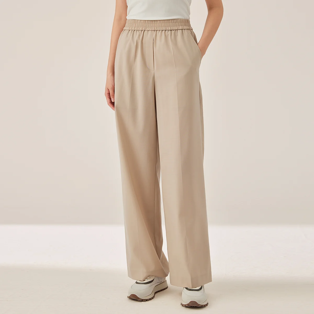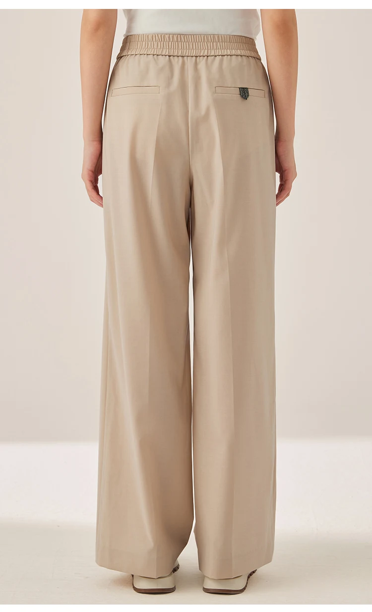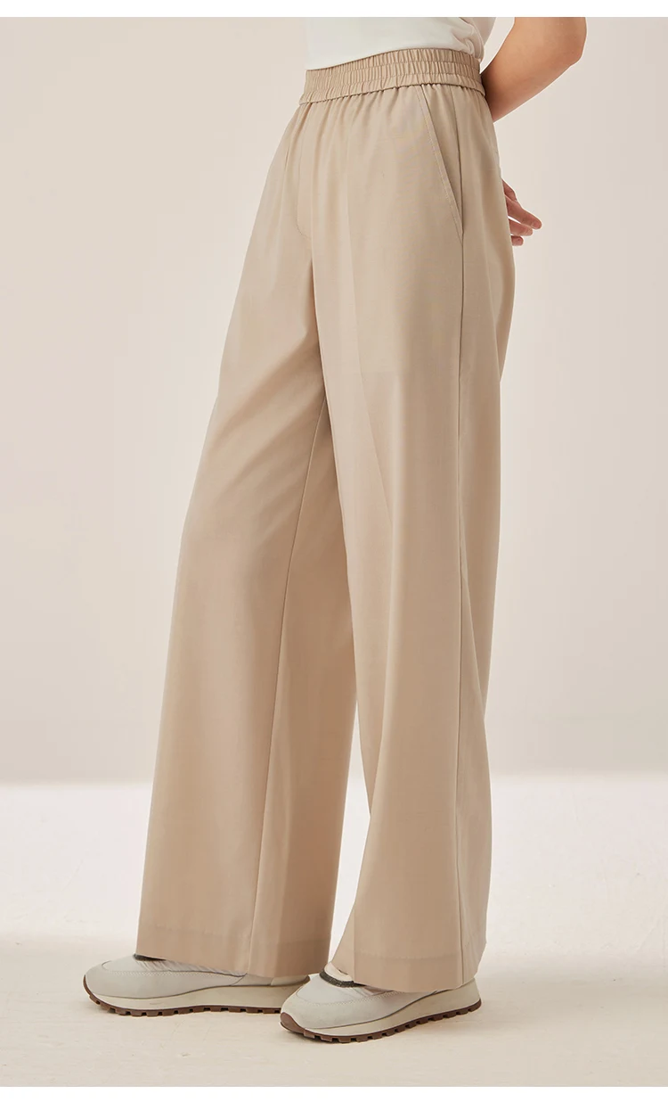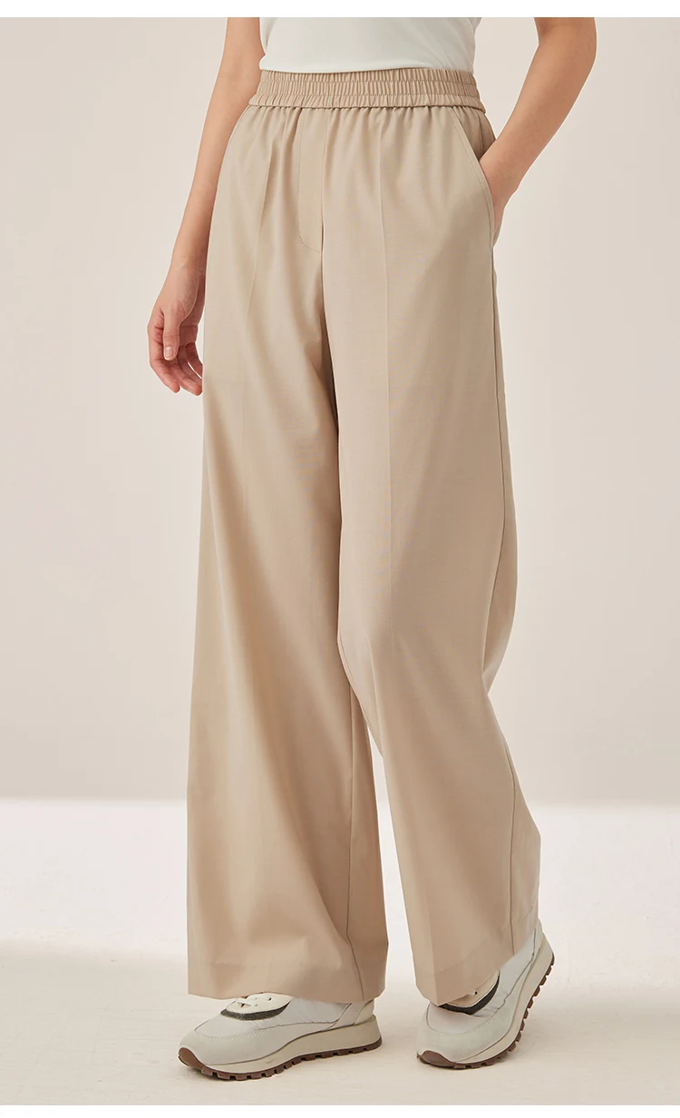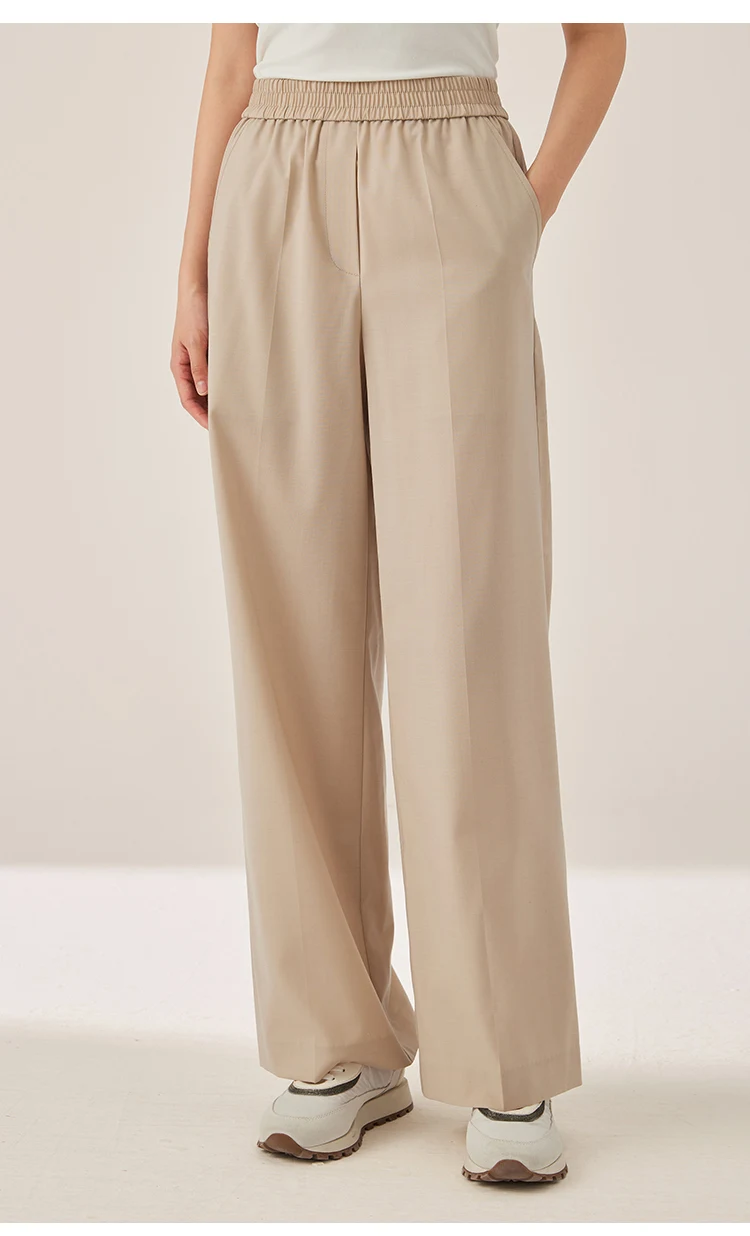 KX7523423 Women’s Wide Leg Wool Blend Pants Casual Elastic Waist Trousers with Pockets