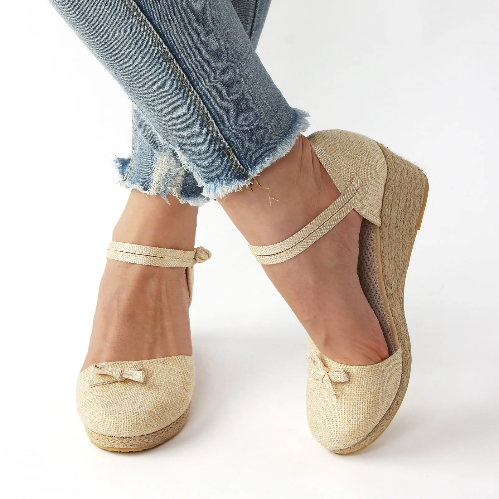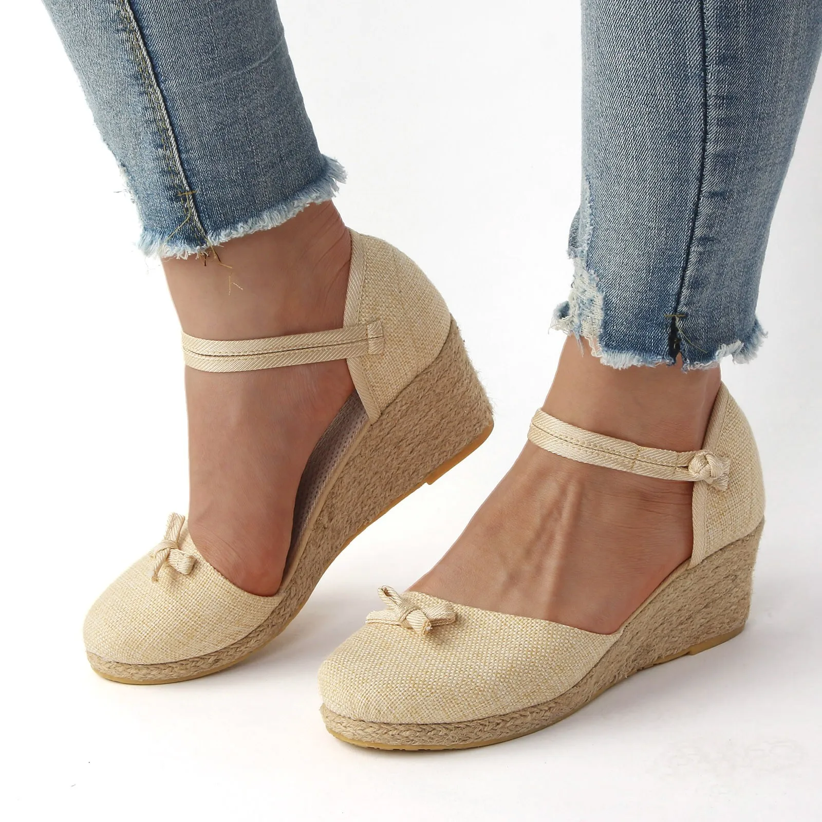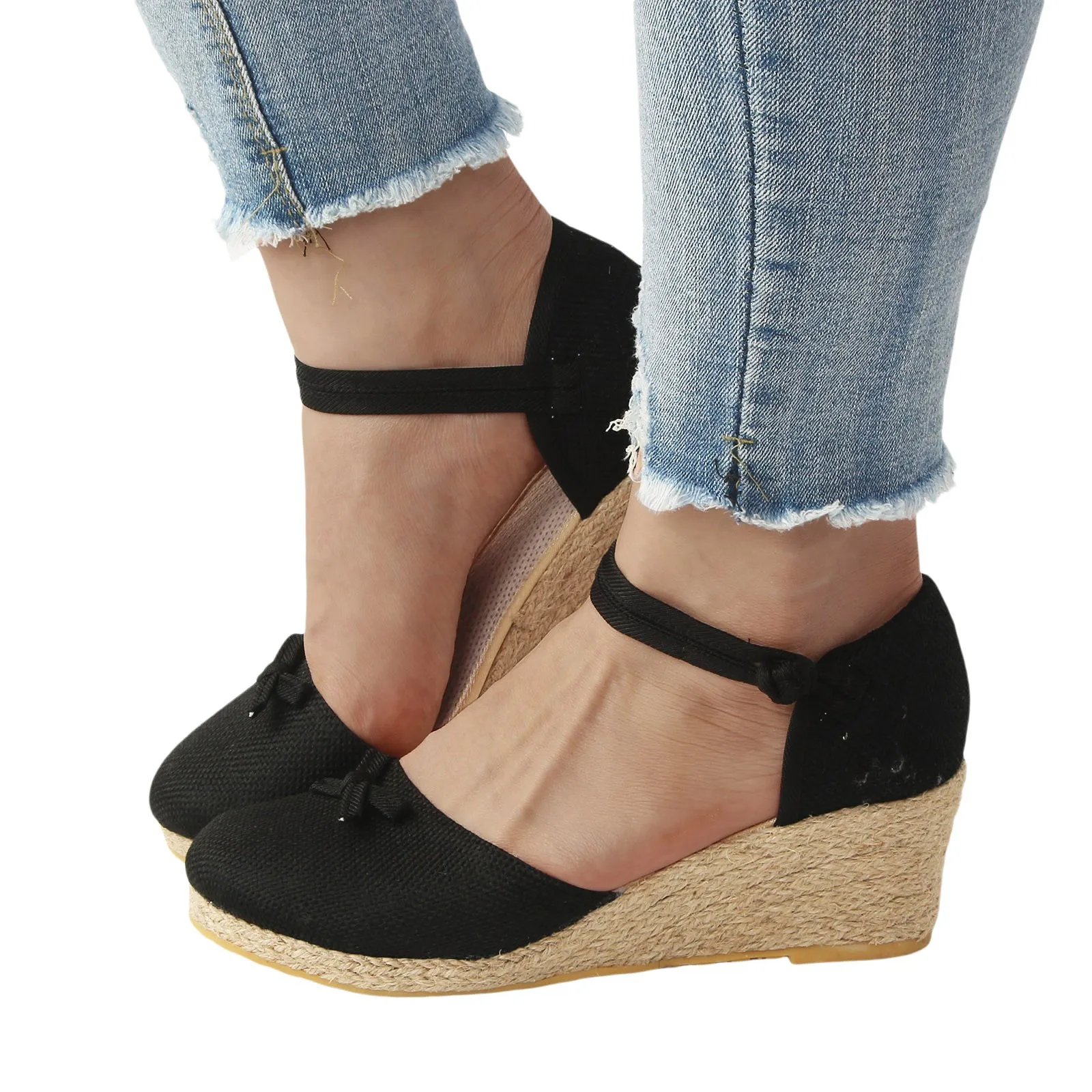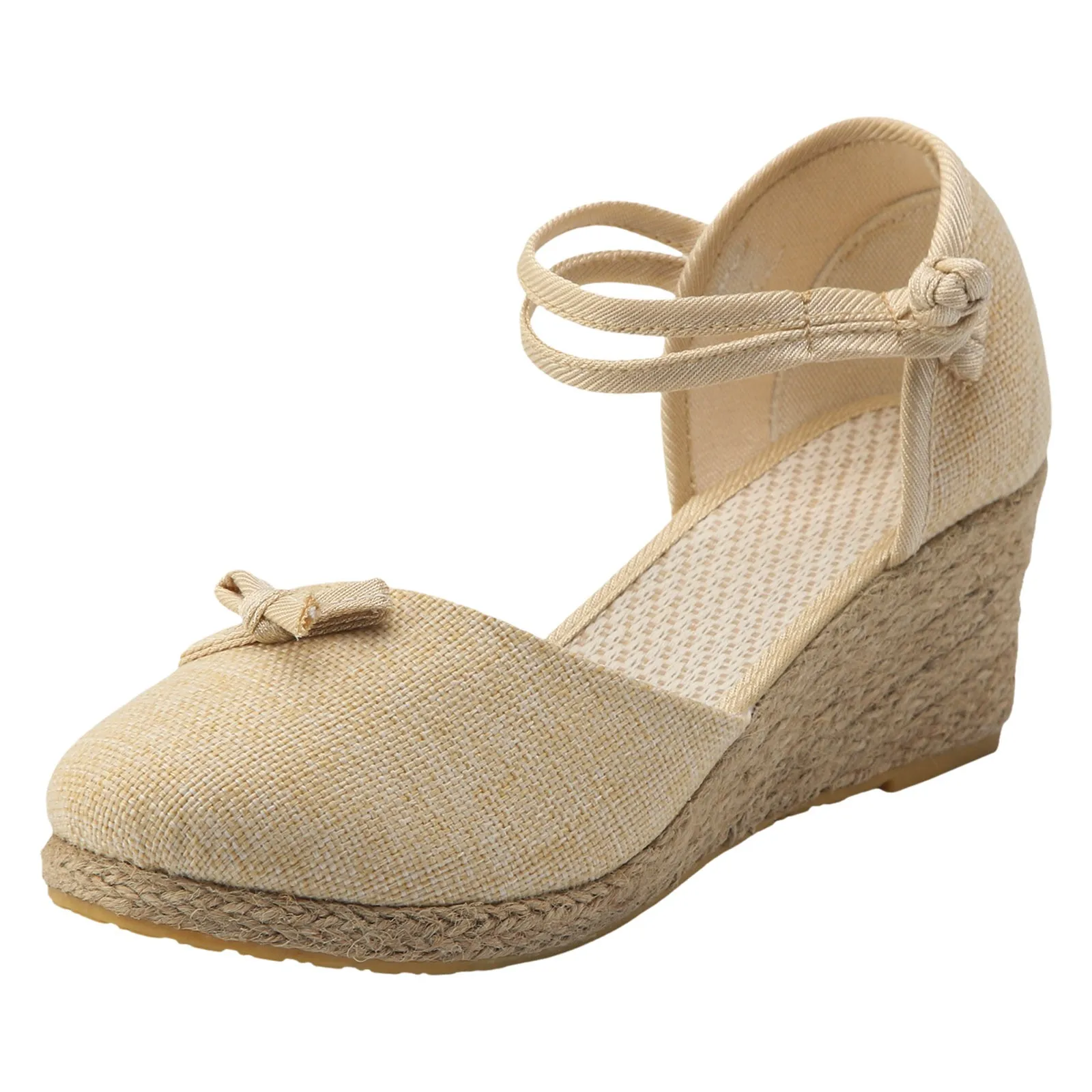 Wedge Sandals For Women Versatile And Fashionable Breathable Buckle Straw Sandals Summer Travel High Heeled Sandals For Women