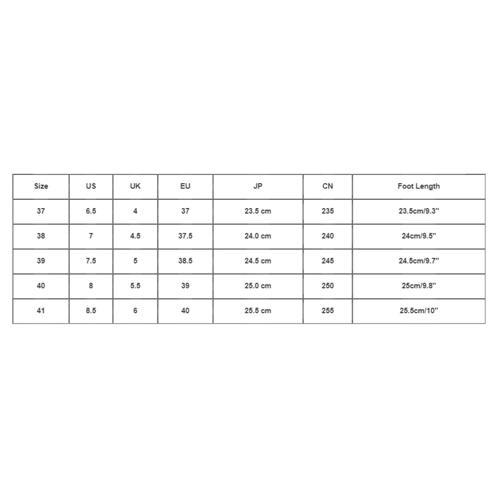 | Size:37 | US:6.5 | UK:4 | EU:37 | JP:23.5 cm | CN:235 | Foot Length:23.5cm/9.3” |