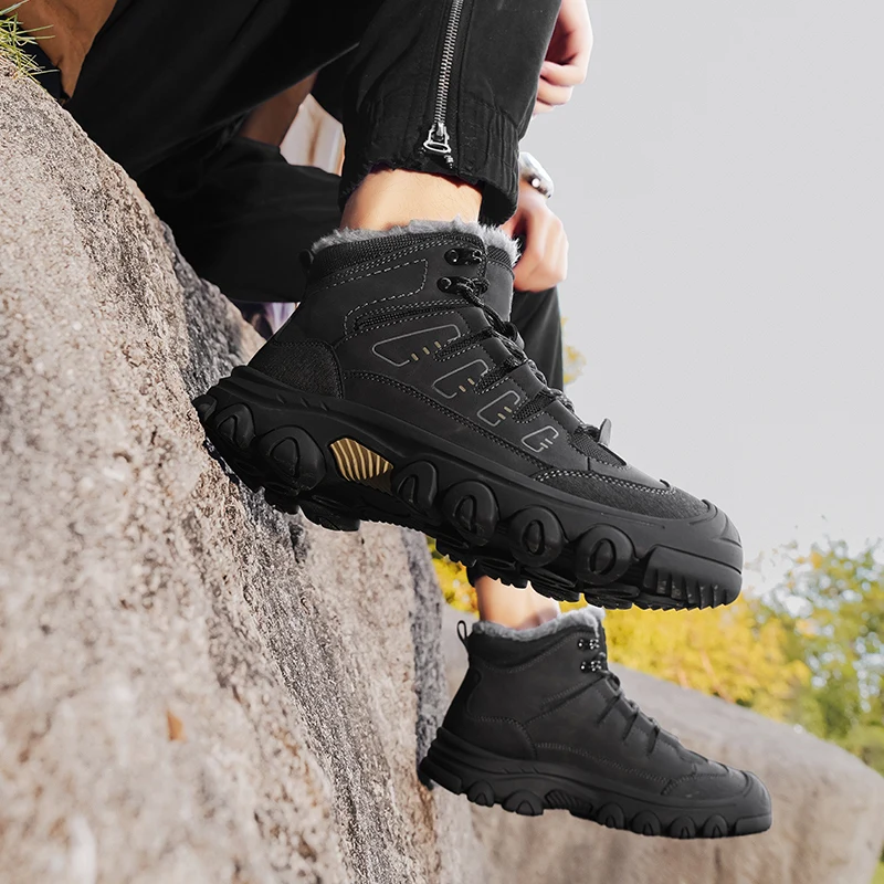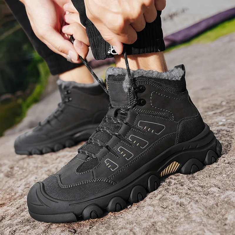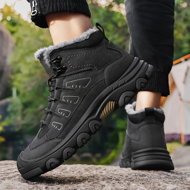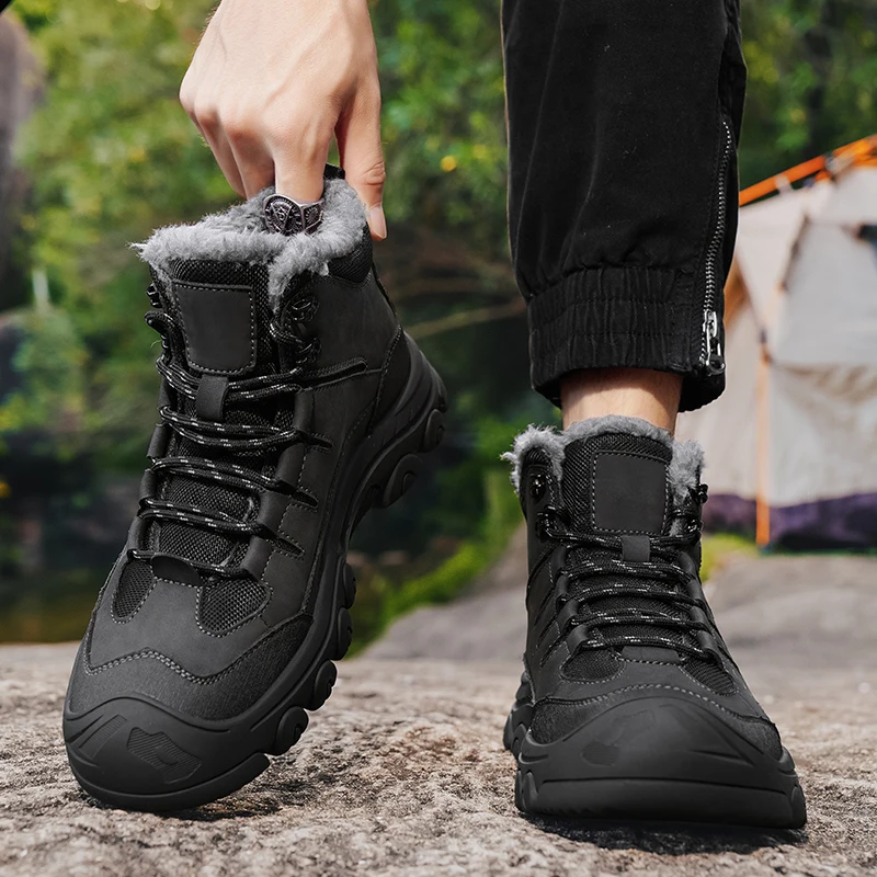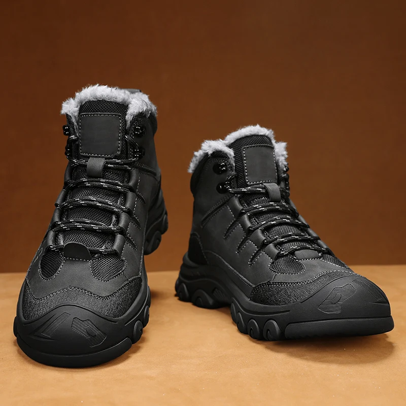 Men Winter Snow Boots Super Warm Men Hiking Boots High Quality Waterproof Leather High Top Big Size Men's Boots Outdoor Sneakers