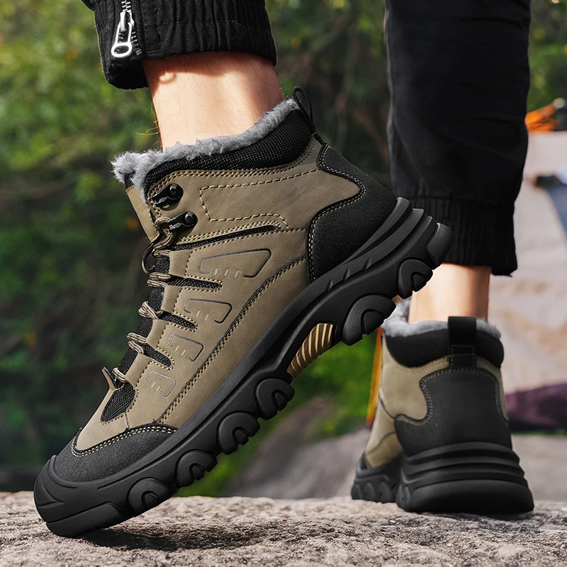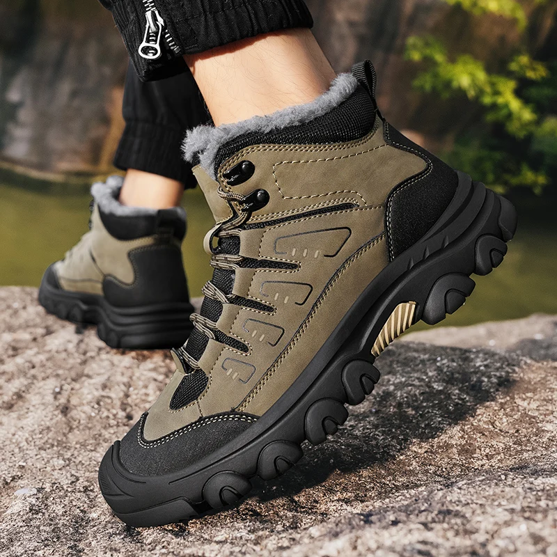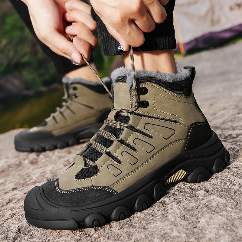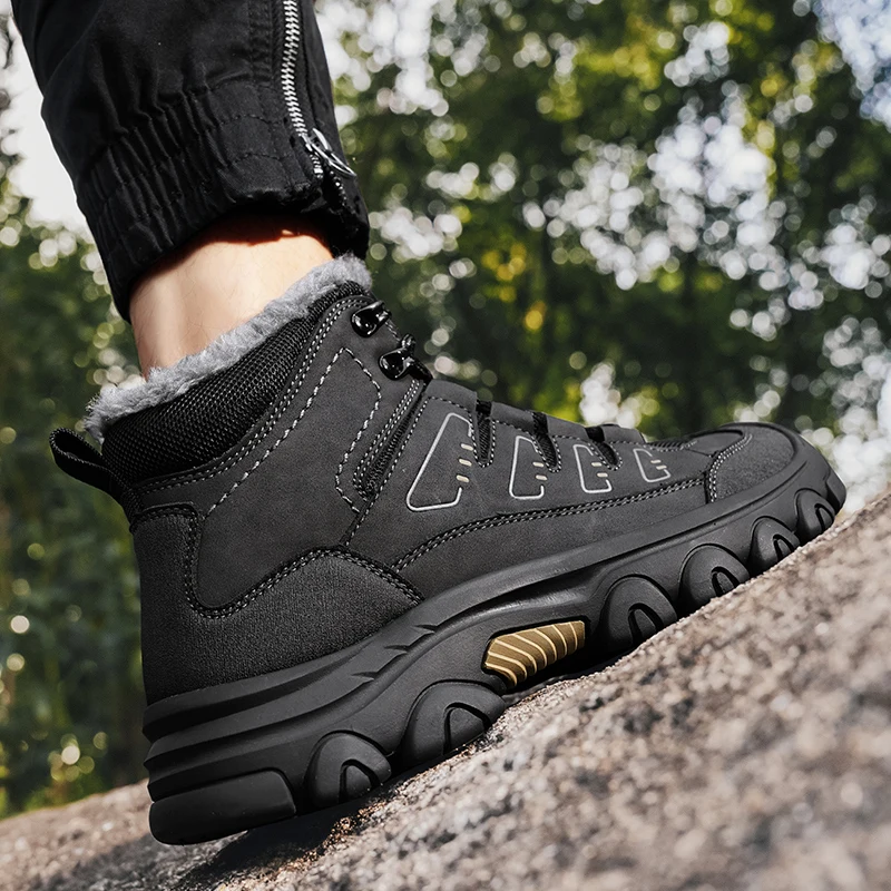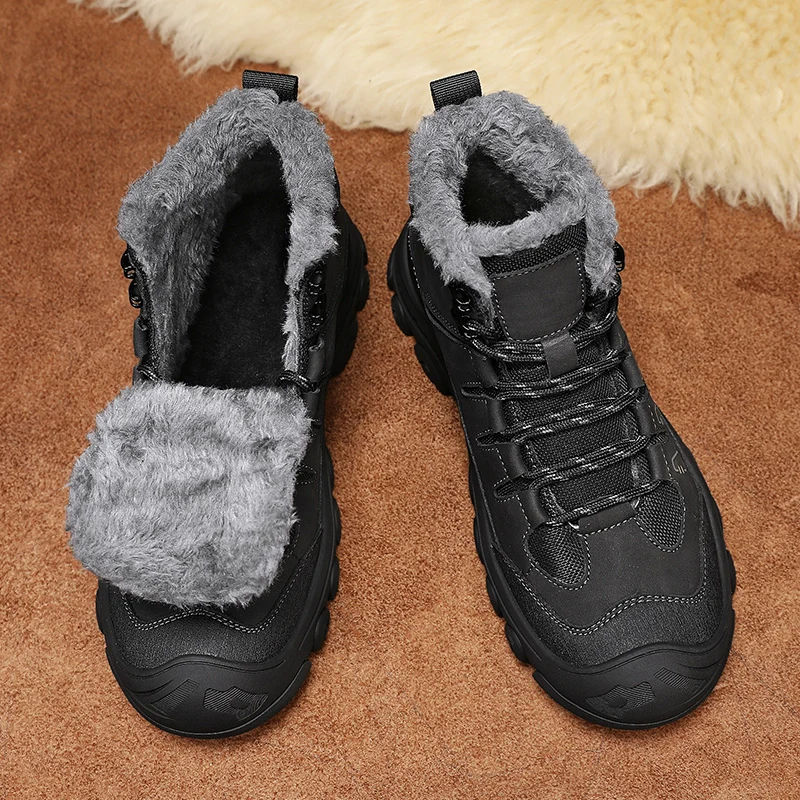 Men Winter Snow Boots Super Warm Men Hiking Boots High Quality Waterproof Leather High Top Big Size Men's Boots Outdoor Sneakers