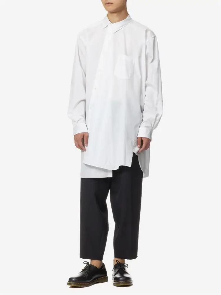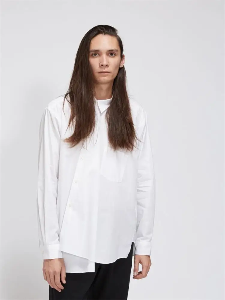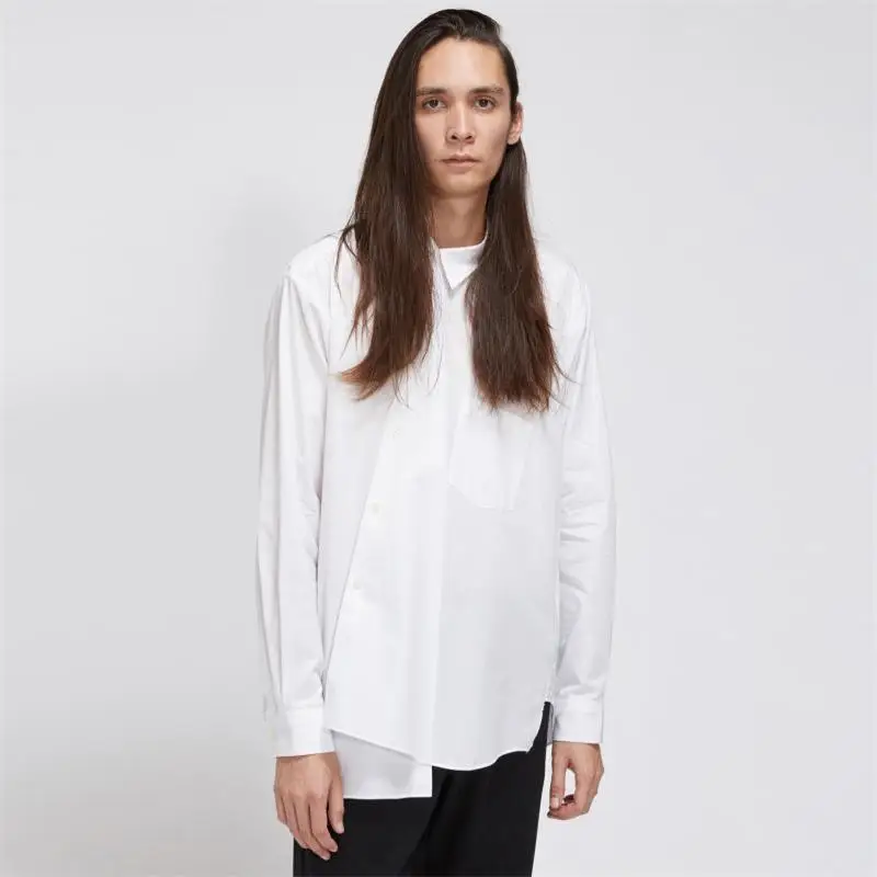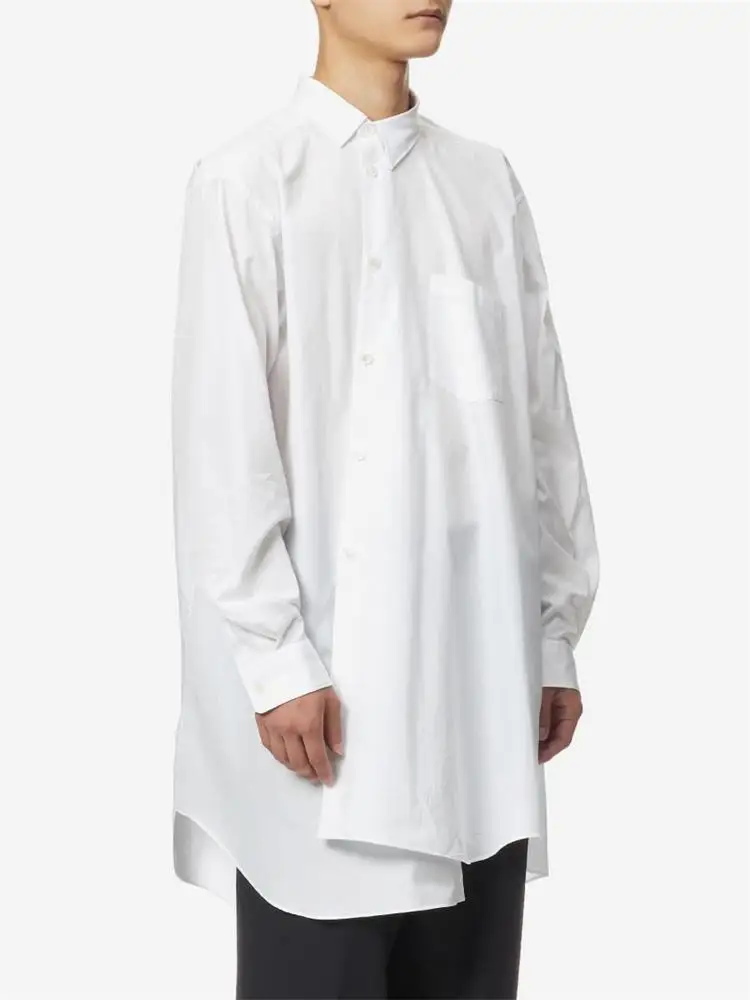 Men’s New Fashion Nordic Asymmetrical Burr Personality Design Classic Simple White Casual Loose Large Shirt