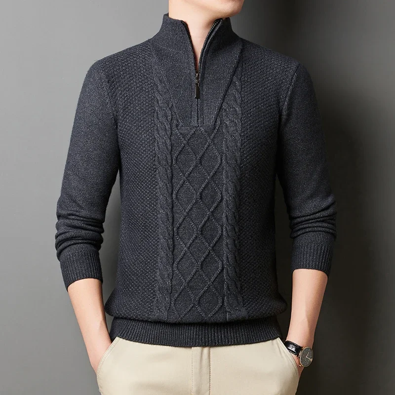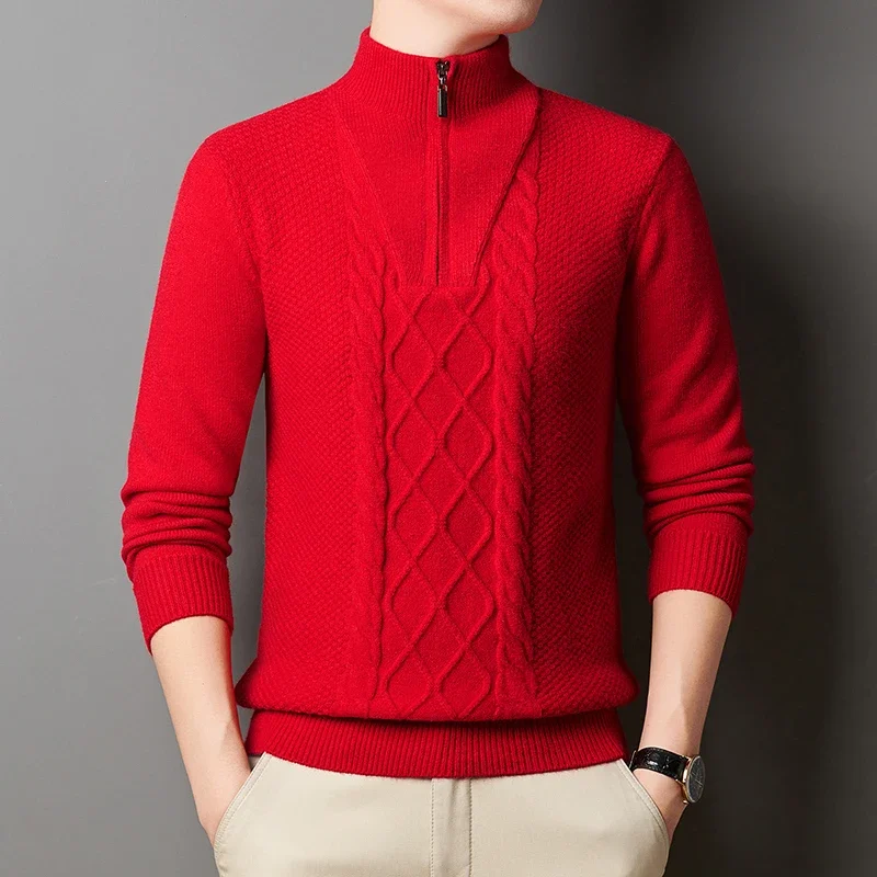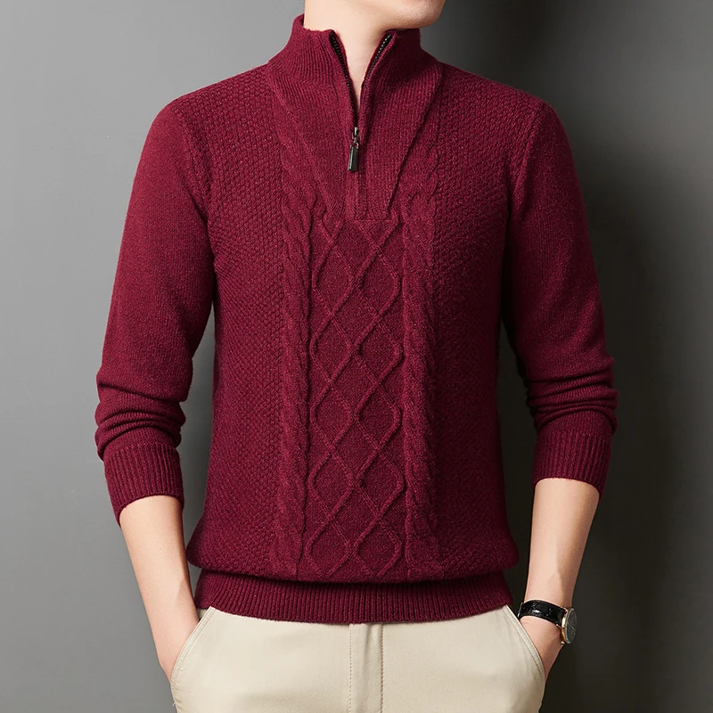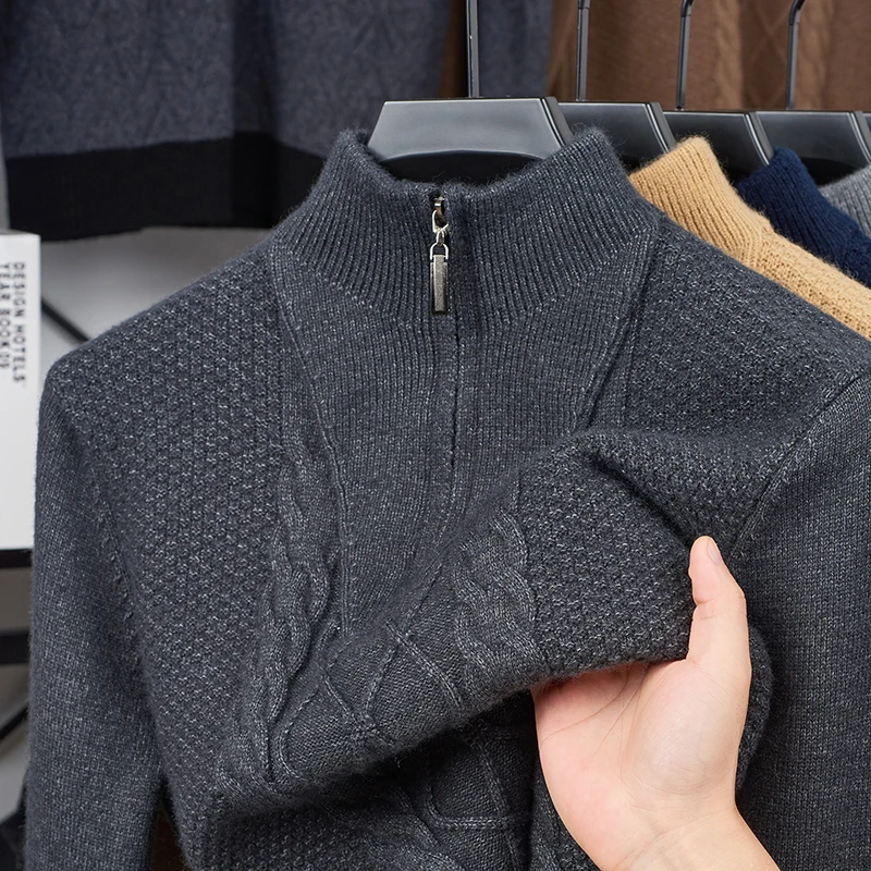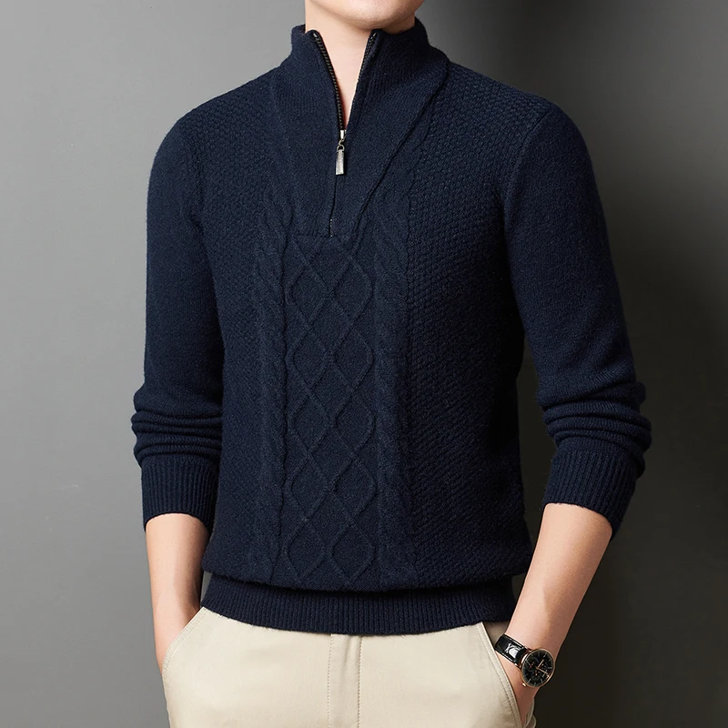 Men’s Wool Sweater Half-Zip High-Neck Pullover Thickened Winter Dadwear Innerwear Base Layer
