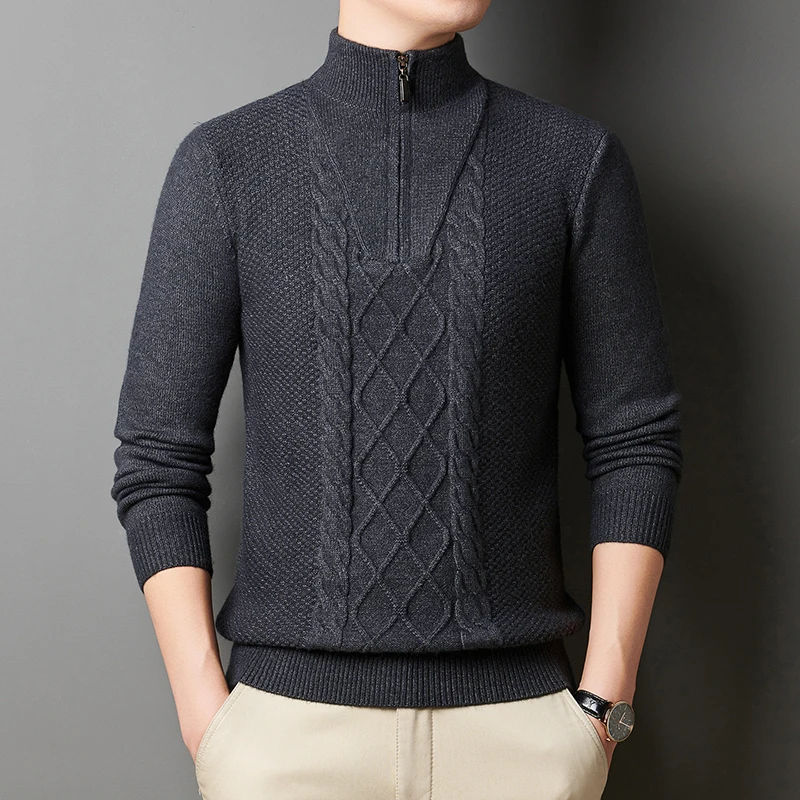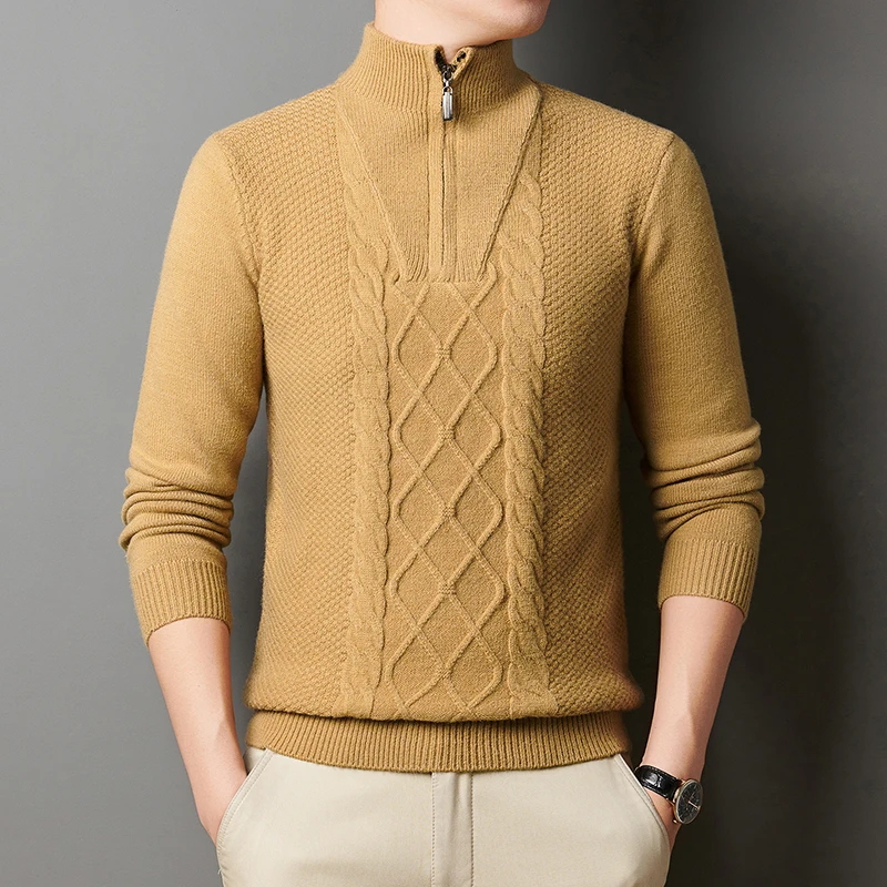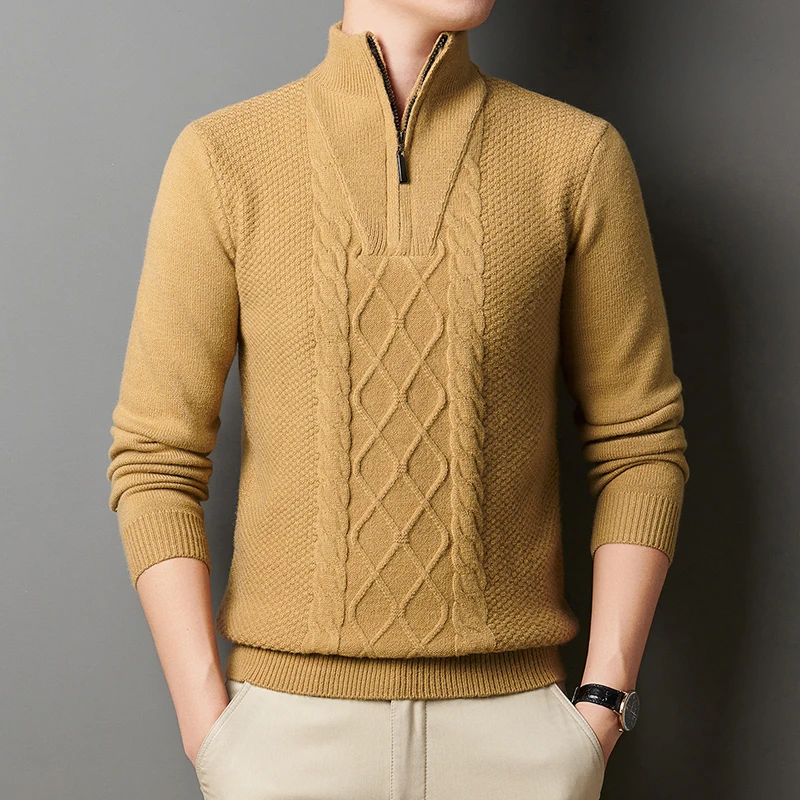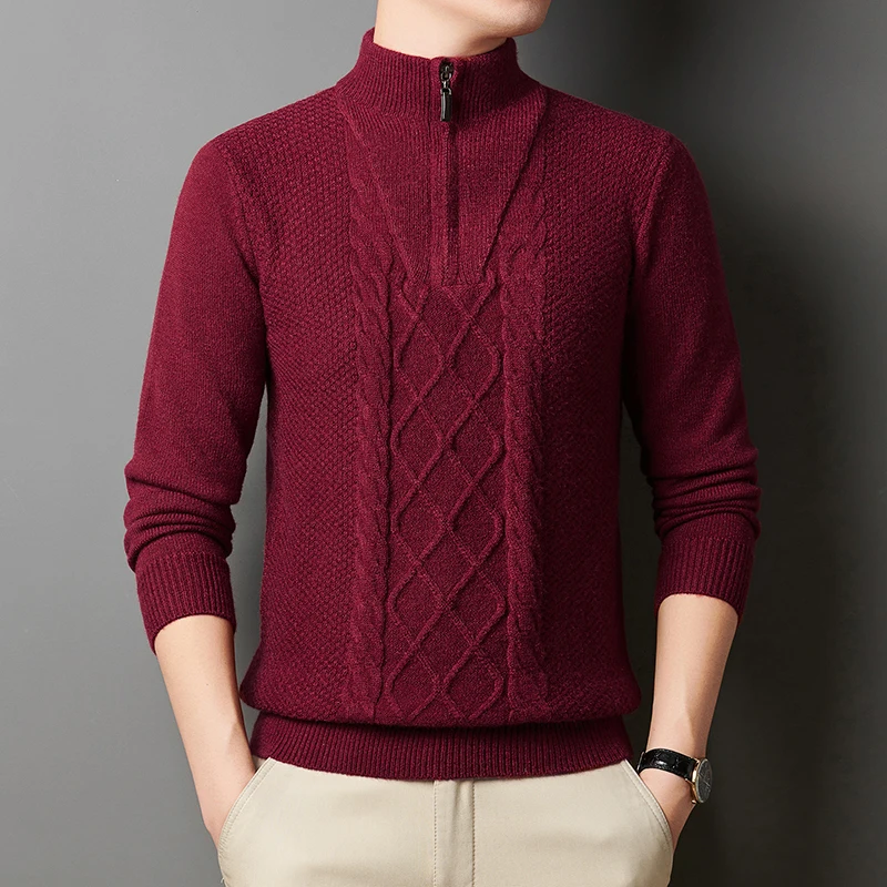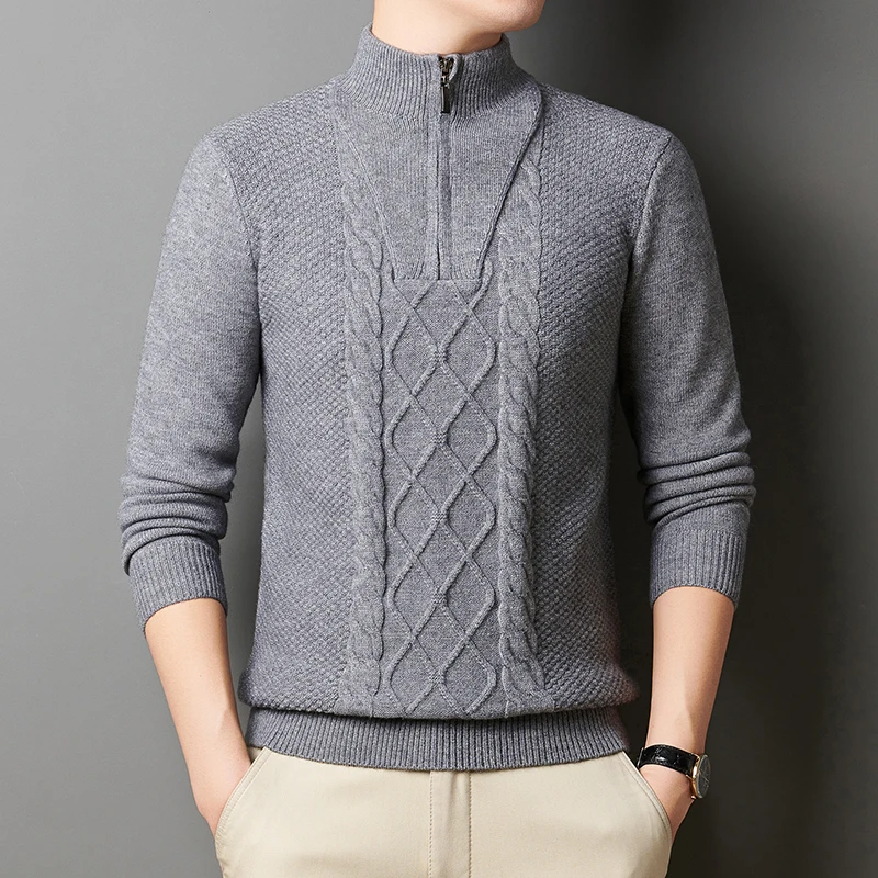Men’s Wool Sweater Half-Zip High-Neck Pullover Thickened Winter Dadwear Innerwear Base Layer