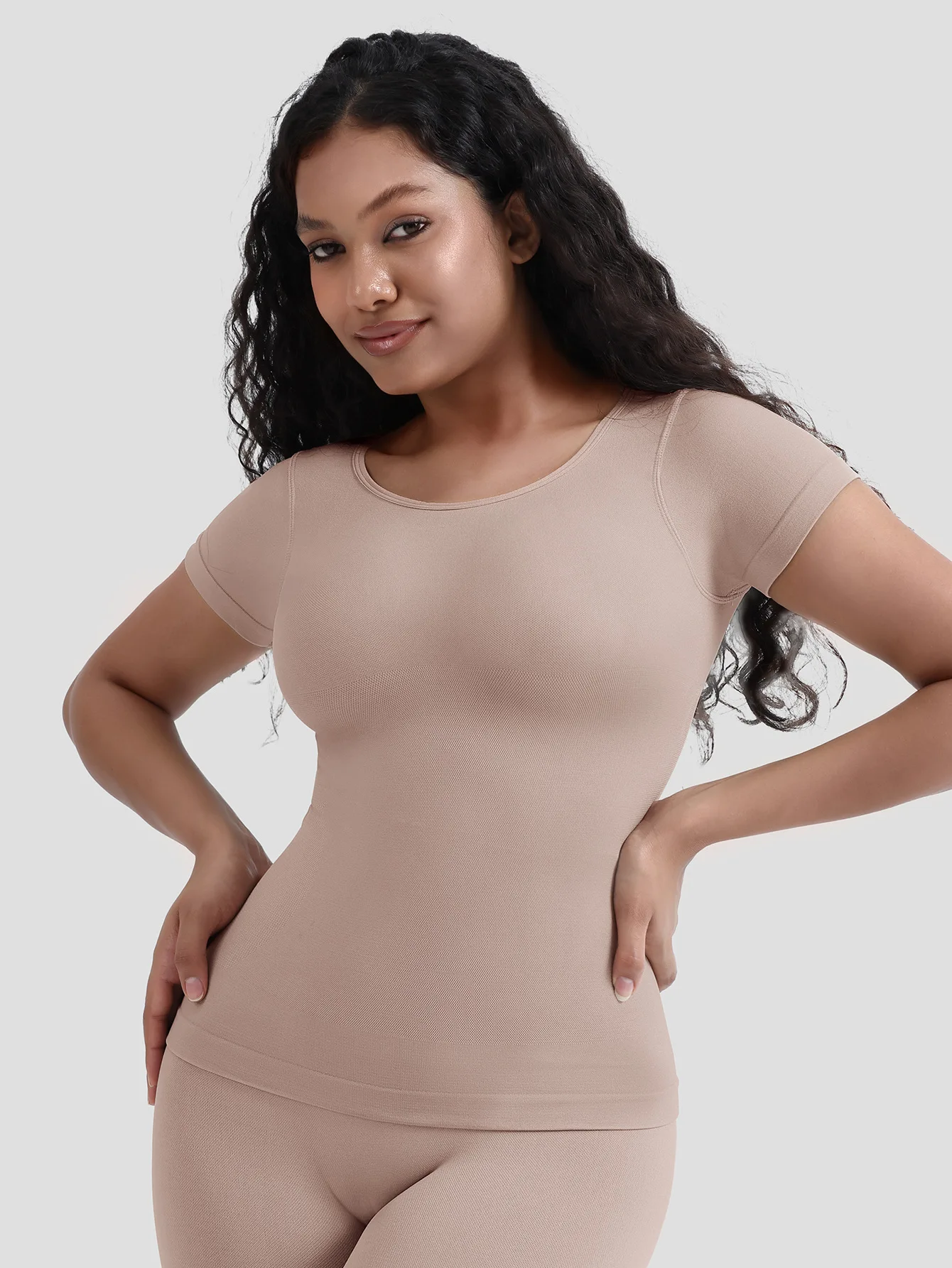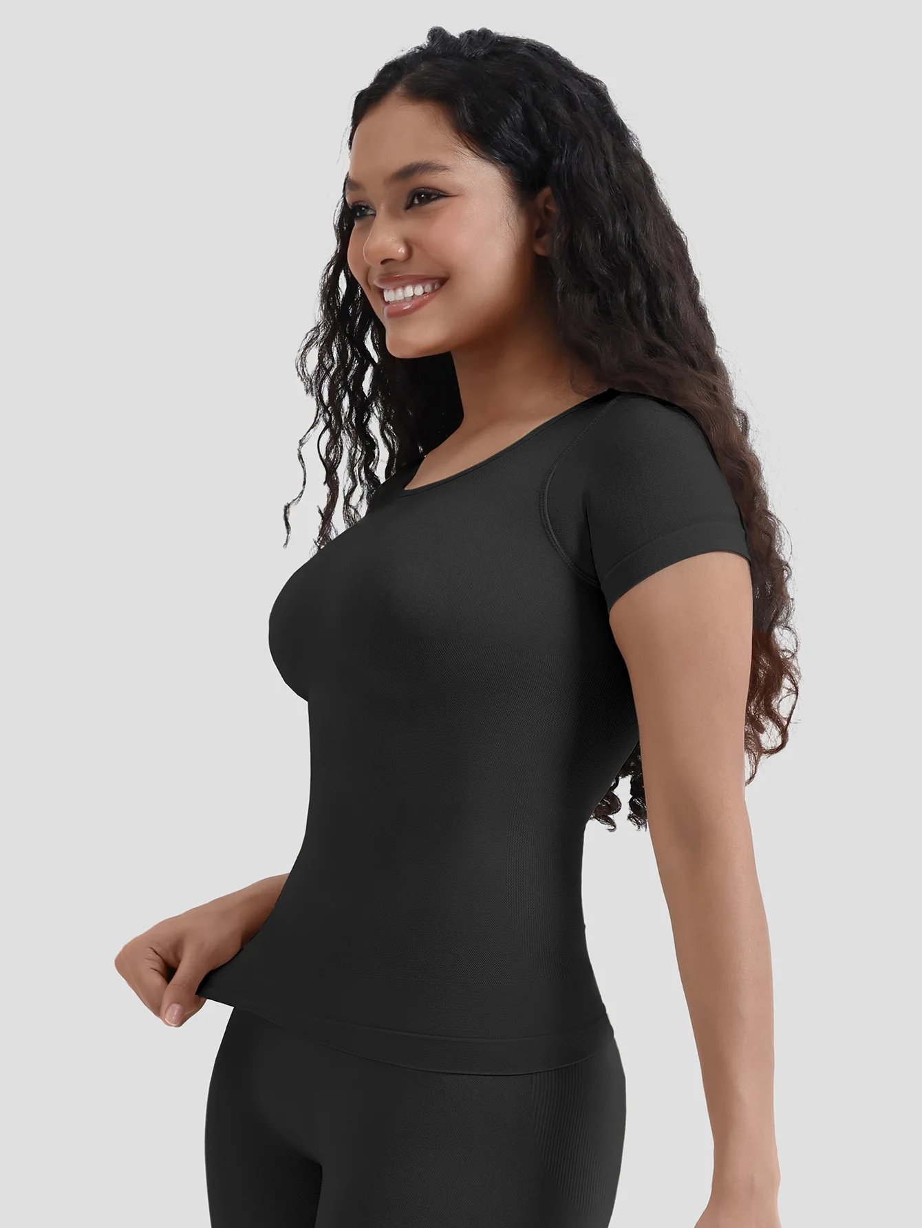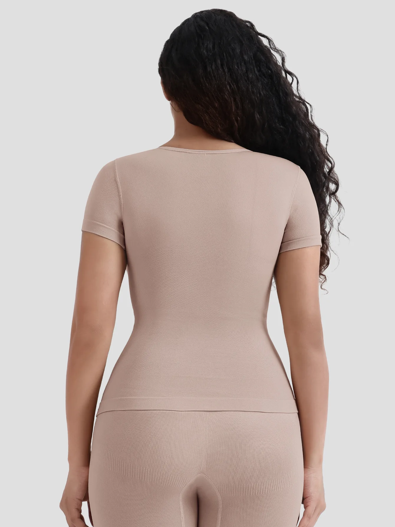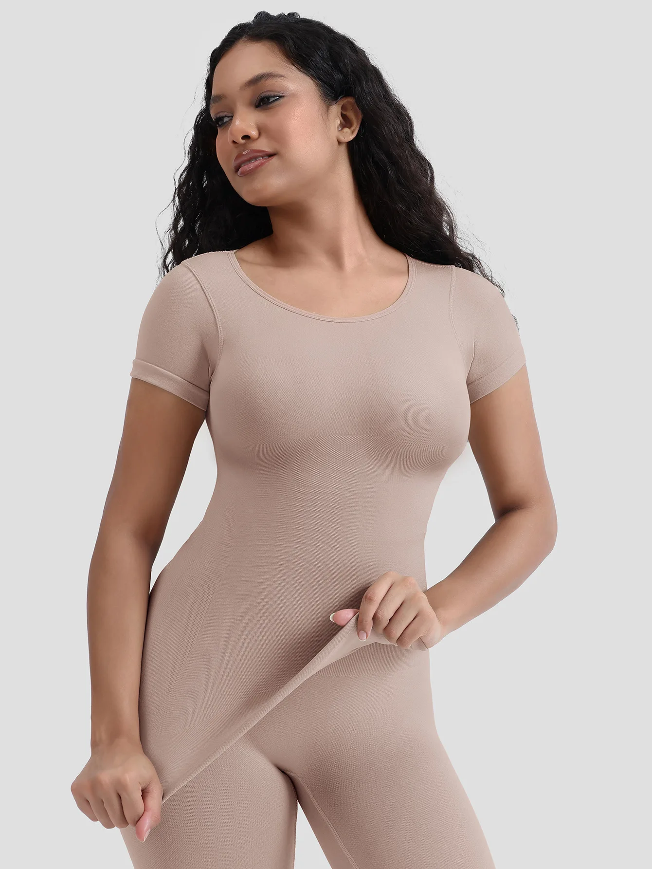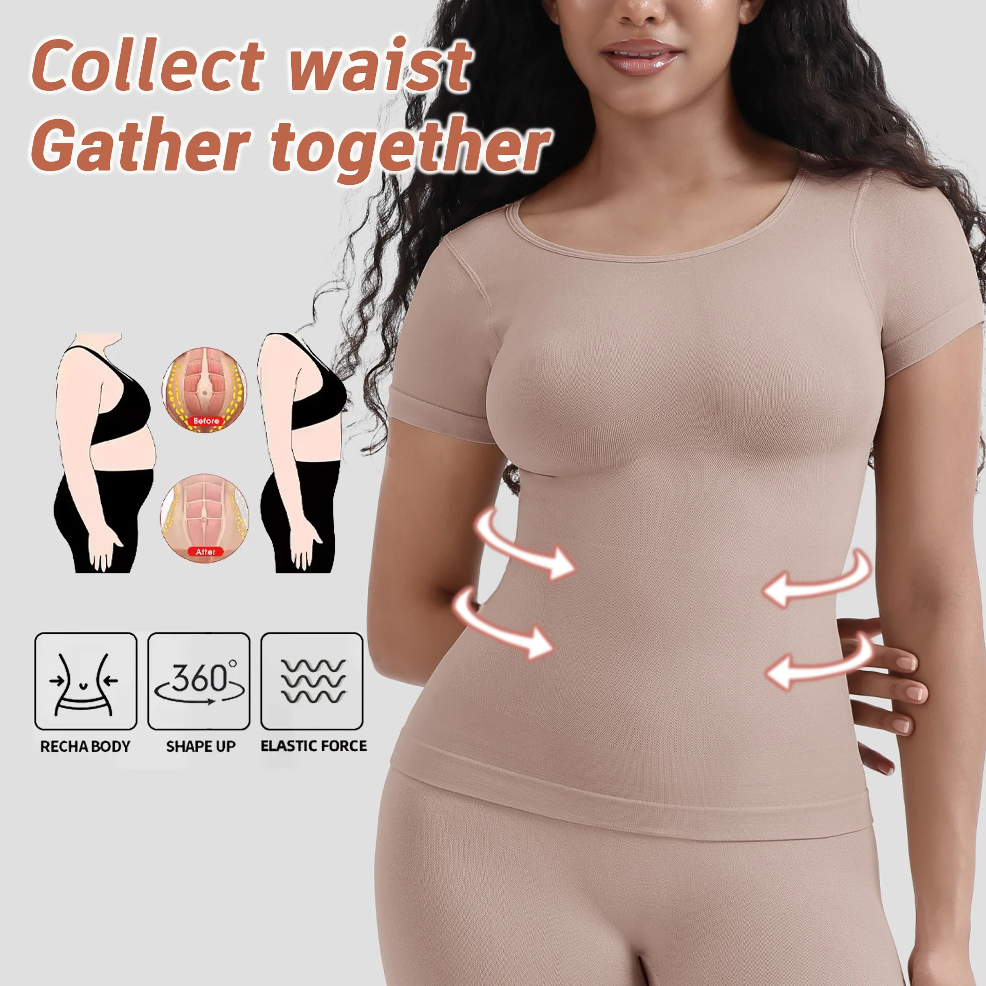 One Piece Women’s Short Sleeve Seamless Shapers Female Elastic Base Shapewear Women Body Shaper Tummy Control