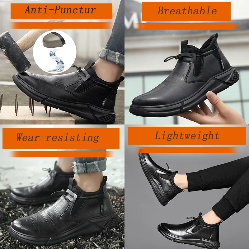 Safety Shoes Waterproof Boots Steel Toe Boots for Men Anti shock Anti-Drop Work Sneakers Non Slip Rubber Sole Work Shoes