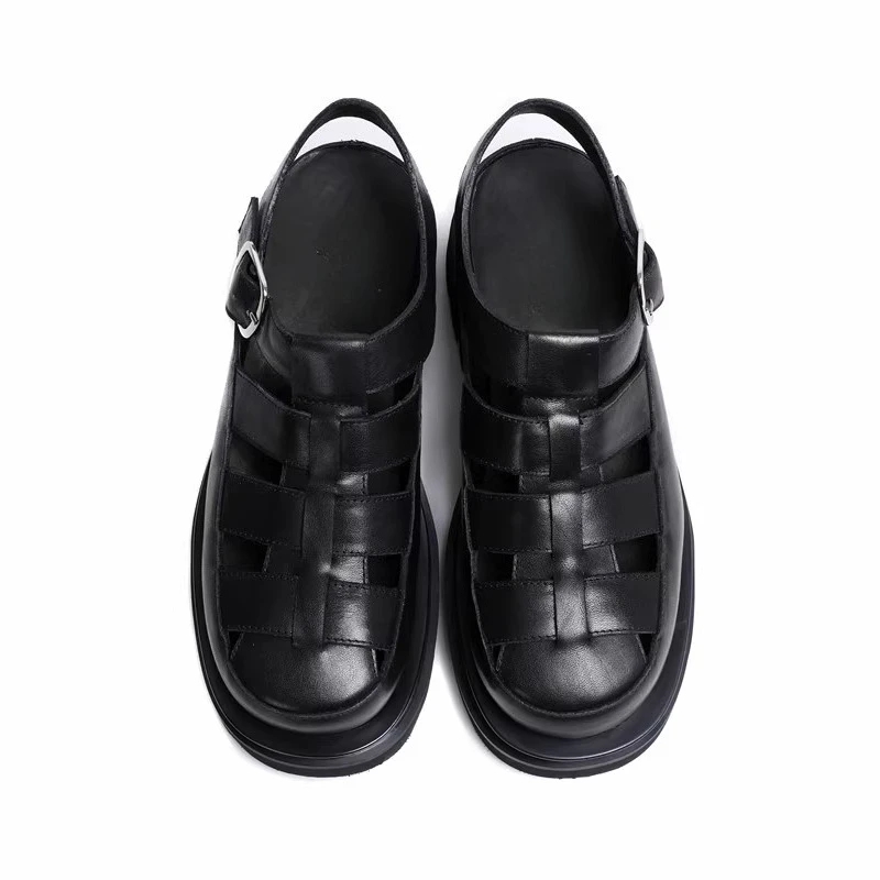 LAORENTOU cowhide breathable sandals with soft soles and anti slip cow tendon soles, cool slippers for casual wear