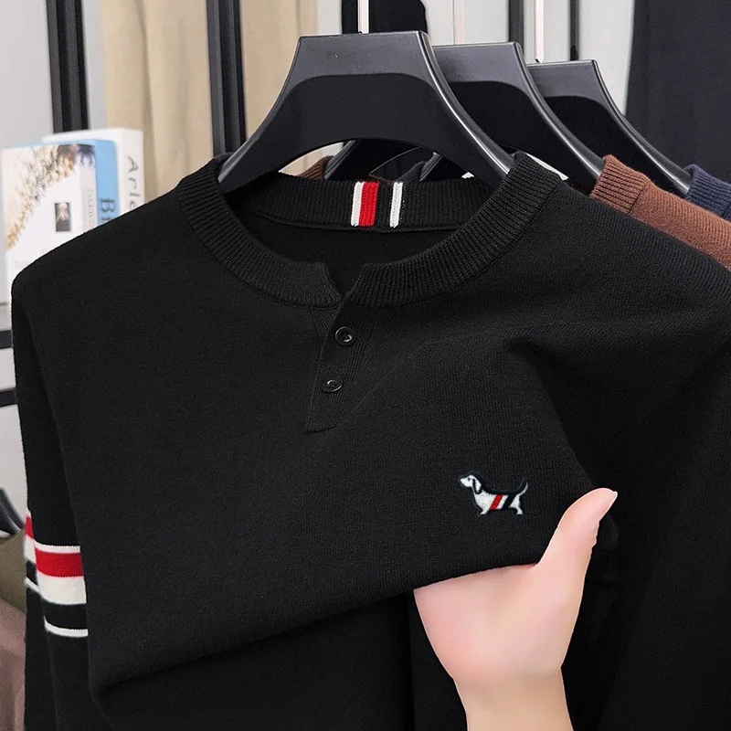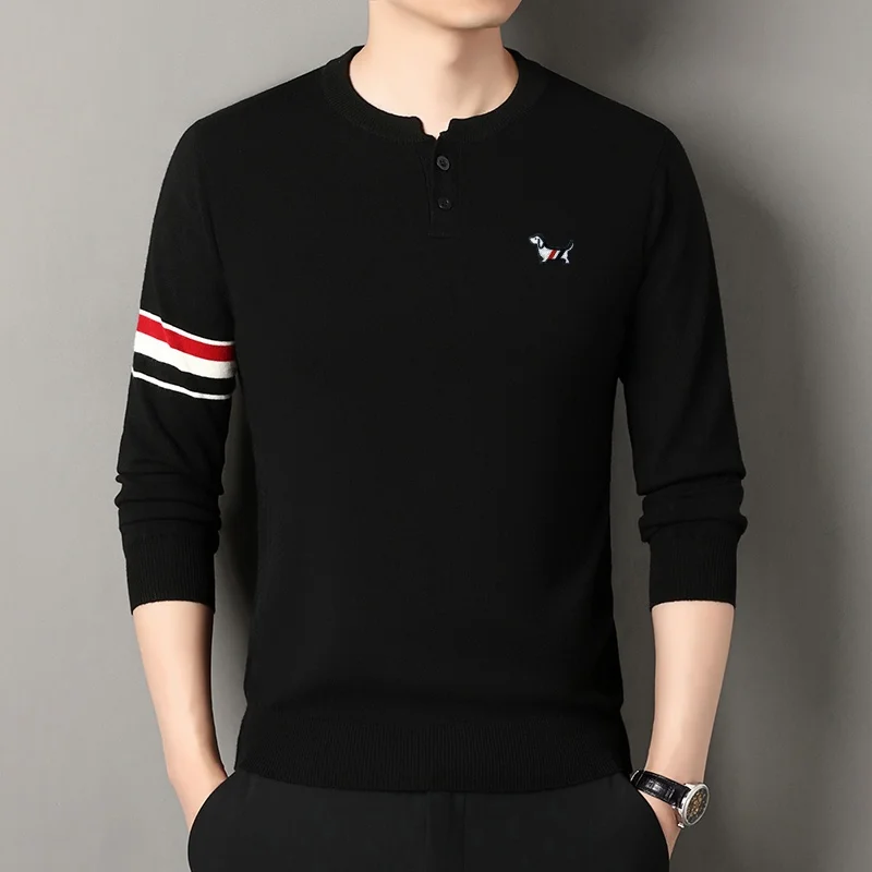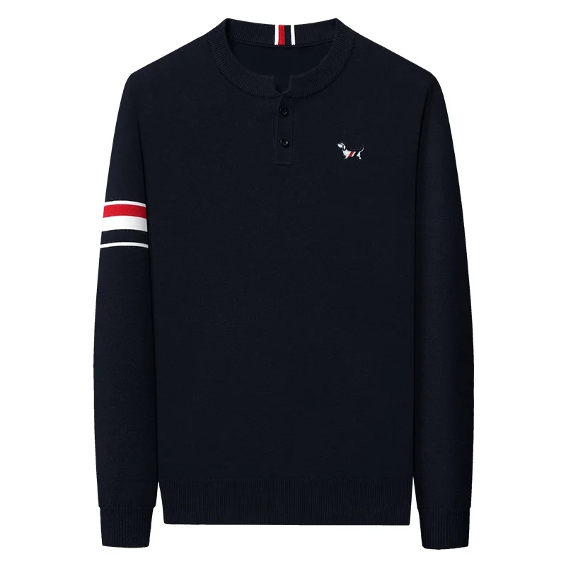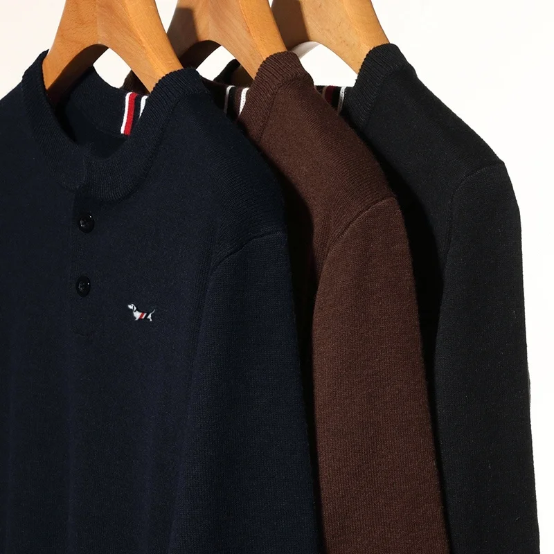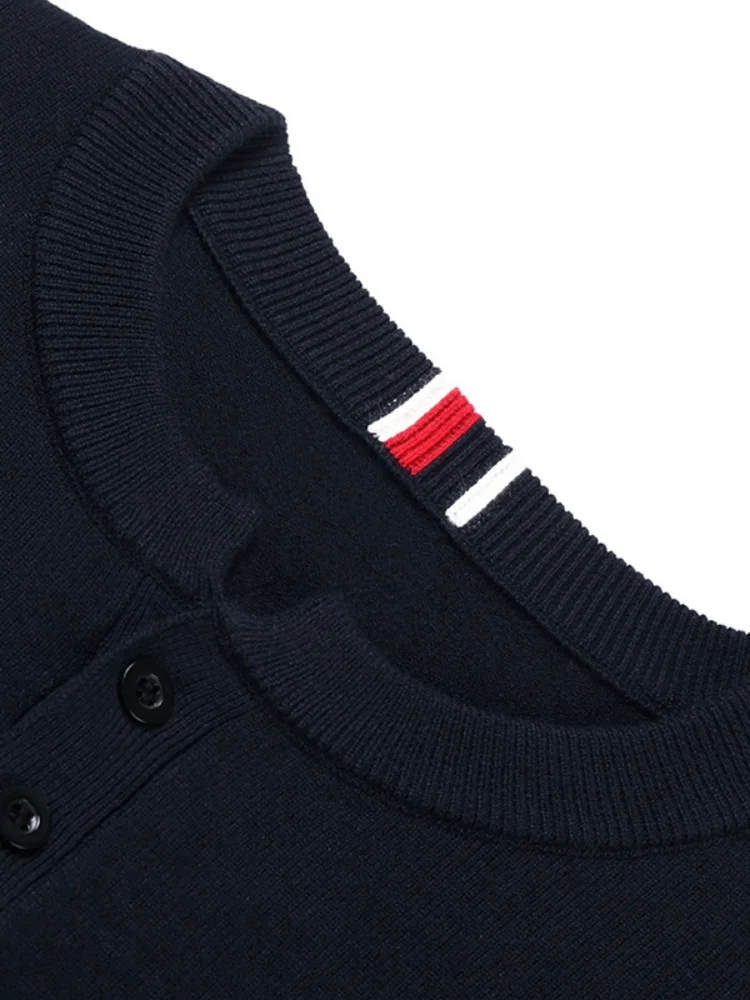 Winter New Men’s O-Neck Pullove Knitwear Sweater Luxury Quality Two Piece Buttons Color Block Thicken Fashion Commuter Menswear