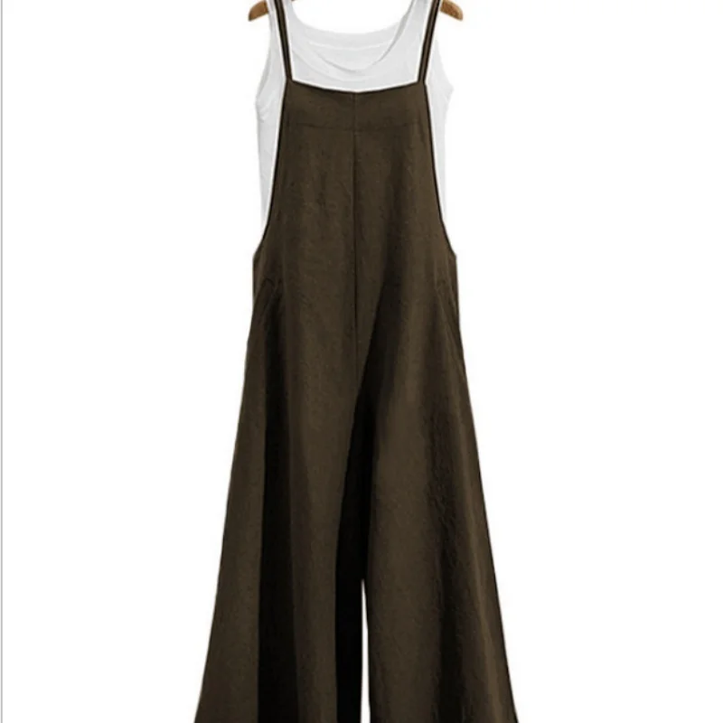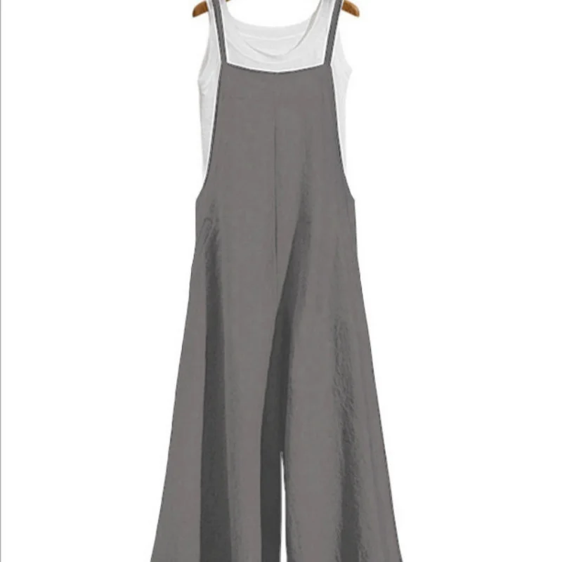 Women Straps Jumpsuit Summer Solid Color Wide Leg Pants Dungaree Bib Overalls Casual Loose Sleeveless Cotton Linen Jumpsuits